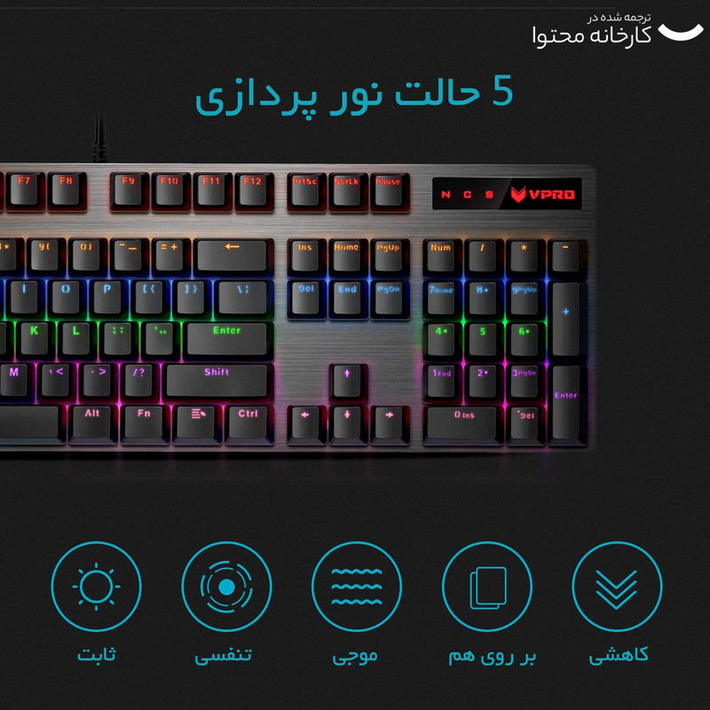 | توضیحات چراغ پس زمینه صفحه کلید | دارای نور رنگی زیر دکمه های صفحه کلید |