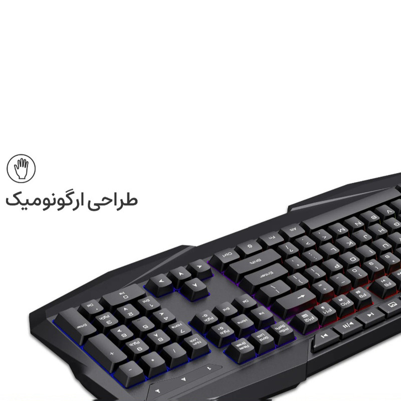 قابلیت‌های کیبورد نورپردازی پس زمینه صفحه کلید , پایه‌های قابل تنظیم , مقاوم در برابر گرد و غبار , قابل استفاده با هر دو دست , حروف حک شده فارسی