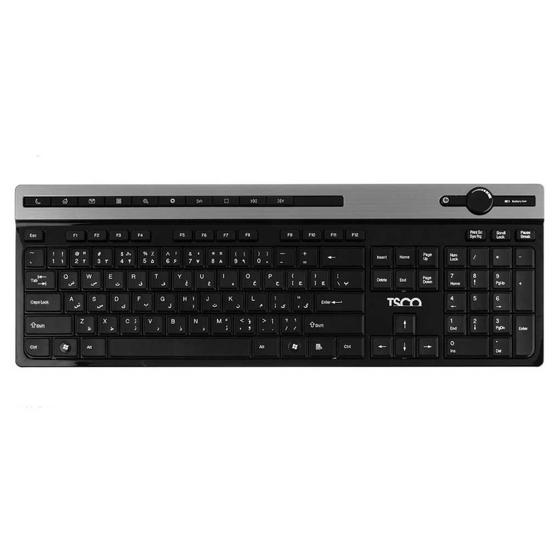 موس و کیبورد مدل TKM-7106 یکی از محصولات خوب شرکت تسکو است که با کیفیت خوب و ظاهر مجذوب کننده ای که دارد توجه کاربران بسیاری را به خود جلب کرده و پر طرفدار است. کیبورد این ست با طراحی منحصر بفرد و سطح براق و آلومینیومی به رنگ طوسی، با ابعاد 28٫5 × 195 × 463 میلی‌متر و به صورت بی سیم طراحی شده و شما را از شر سیم های دست و پا گیر خلاص کرده است، شما می توانید از طریق دانگل USB ای که دارد تا طول محدوده 10 متر به کامپیوتر و لپ تاپ خود متصل شوید. عمر و ضربه پذیری کلید های کیبورد مدل TKM-7106 ده میلیون ضربه بوده و دارای 10 عدد کلید میانبر می باشد که کارهایی مانند کم و زیاد کردن صدا، Play & Paus موسیقی و… بر عهده ی آنها می باشد، همچنین بر روی کلید های این کیبورد حروف فارسی حک شده است که باعث شده تا در هنگام تایپ فارسی راحت تر باشید. این کیبورد انرژی خود را از دو باتری AAA تامین می کند.