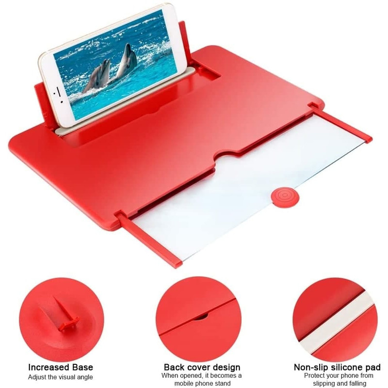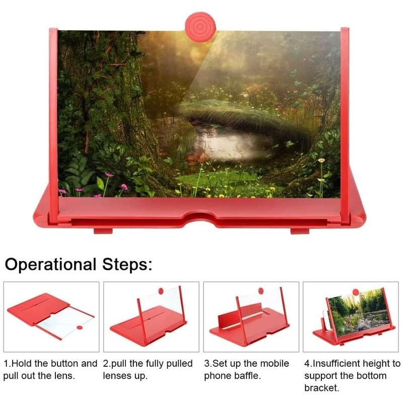 با کیت بزرگ‌نمایی صفحه‌نمایش گوشی موبایل، نگران مطالعه یا تماشای ویدیو با صفحه‌نمایش‌های کوچک گوشی‌هایتان نباشید. این کیت بزرگنمایی صفحه نمایش موبایل 12 اینچ می باشد و ابعاد لنز آن 20*13.5 سانتیمتر است. این محصول قادر است خروجی صفحه‌نمایش گوشی موبایل را تا سه‌برابر بزرگ و تماشای آن را راحت‌تر کند. مطالعه‌ی PDF‌ها و تماشای فایل‌های ویدیویی در تبلت‌ها، به خاطر صفحه‌نمایش بزرگ‌تری که نسبت به گوشی‌های موبایل دارند، راحت‌تر است. حروف، درشت‌تر و با فاصله‌ی بیشتری در کنار هم دیده می‌شوند و قابلیت تشخیص و صحیح خواندن آن‌ها بیشتر است. این محصول می تواند سایز تصویر موبایل یا تبلت را 2 تا 3 برابر (با توجه به سایز صفحه موبایل یا تبلت) بزرگنمایی کند. این کیت بدون نیاز به نصب نرم افزار یا ... کار می کند و با تمامی گوشی های موبایل و تبلت ها قابل استفاده است. این محصول خستگی و سوزش چشم در اثر نگاه کردن طولانی مدت به صفحه موبایل را از بین می برد و با استفاده از آن می توانید فیلم، کلیپ، تصاویر و ... موبایل خود را در سایز بزرگ به راحتی تماشا کنید و لذت ببرید- قابلیت استفاده به عنوان ذره بین برای بزرگنمایی متن کتاب، روزنامه و ... - پایه با طراحی ارگونومیک برای محکم حفظ شدن گوشی - قابل اسـتفاده برای انـواع گـوشی موبایـل و تبلت - دارای چارچوبی تاشو از جنس پلاسـتیک ABS مقاوم و با کیفیت - کاهش سوزش چشم و پدیدار شدن اشـک - بـدون نیـاز به نصـب نـرم افـزار و ... - قابلیت بزرگنـمایی تا سه بـرابـر - بدون نیاز به برق و باطـری