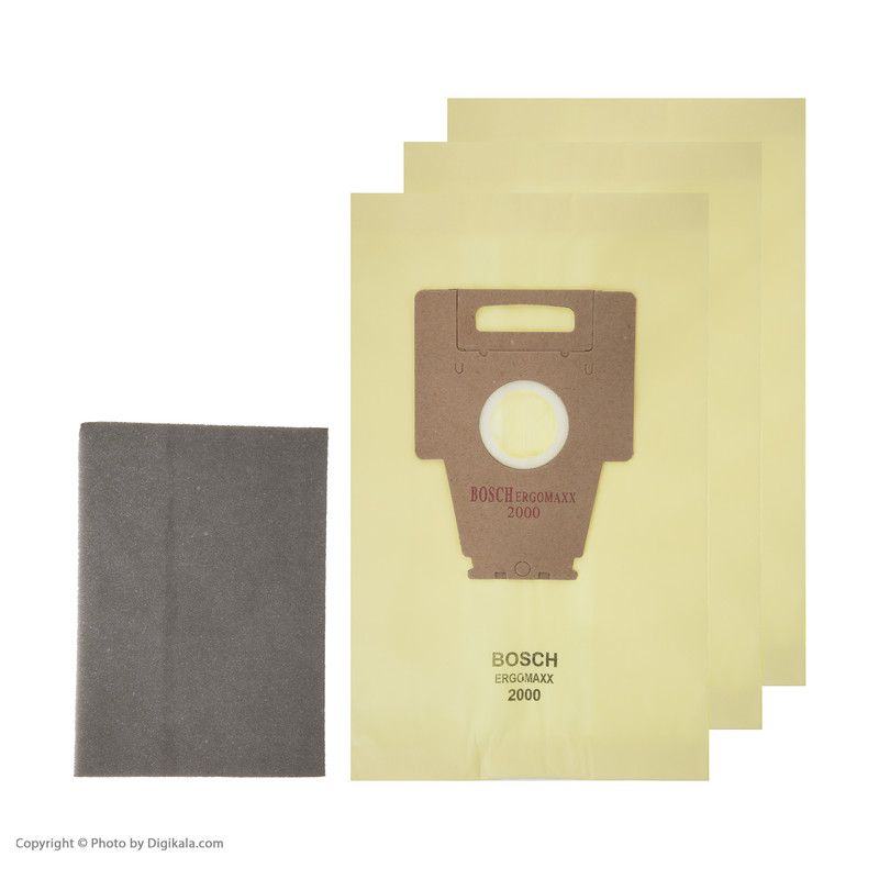 سایر توضیحات | شامل 5 عدد پاکت کاغذی یکبار مصرف و یک عدد فیلتر فیلتراسیون 99.9 درصد مناسب جاروبرقی بوش Ergomax 2000 |