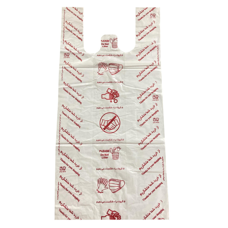 | سایر توضیحات | ابعاد درحالت بسته با احتساب دسته نایلون حدودا 55×27 سانتی متر این نایلون دسته دار تهیه شده از مواددرجه یک و اعلا بدون بو با چاپ طرح از خرید شما متشکریم کرونارا شکست خواهیم داد میباشد مناسب جهت مصارف رستوران ها،خشکبار فروشی ها، لوکس فروشی هاو... سایز باز شده این پلاستیک 45×55 سانتی متر میباشد این نایلون اصطلاحا به نایلون 5 کیلویی معروف است یعنی گنجایش 5 کیلوگرم کالارا دارد بسته 50 عددی |