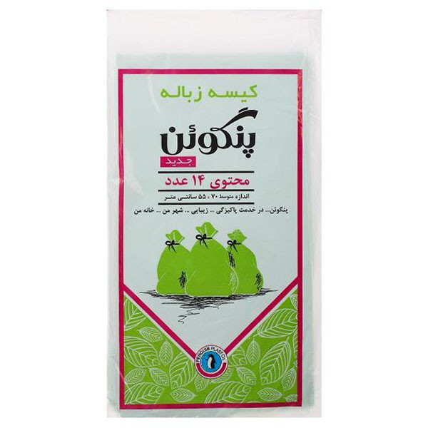 ستفاده از کیسه زبالهی باکیفیت و مقاوم میتواند تا حدود زیادی از کارهای ناخواستهی یک خانه کم کند، گاهی بر اثر استفاده از یک کیسه زبالهی نامرغوب نشتی محتویات کیسه، تمام خانه و مسیر ساختمان تا سطل زبالهی خیابان را کثیف خواهد کرد. کیسه زبالهی 14 عددی (پنگوئن) «Penguin» با ابعاد 70× 55 سانتیمتر و به رنگ سبز است. هر چند کیسه زباله با مواد غذایی تازه سروکار ندارد اما برای حفظ طبیعت در ساخت آن هم از مواد اولیه مرغوب استفاده شده که هنگام تجزیه کمترین اثر را بر روی طبیعت بگذارد. دوخت مقاوم کنارههای کیسه از پاره شدن کیسه جلوگیری میکند به همین دلیل از این کیسه زباله میتوان برای نگهداری لباسهای زمستانی در فصل گرم، هنگام اسبابکشی، جهت نگهداری کتابها برای جلوگیری از نشتن گردو خاک بر روی آنها و ...هم استفاده کرد. شرکت پنگوئن پلاست در سال 1354 شمسی تاسیس شده است و در حال حاضر به لحاظ تکنولوژی در زمرهی پیشرفتهترین و کاملترین واحدهای تولیدی در این صنف است و به یکی از بهترین و پر تیراژترین تولید کنندههای محصولات پلاستیکی داخلی تبدیل شده است.