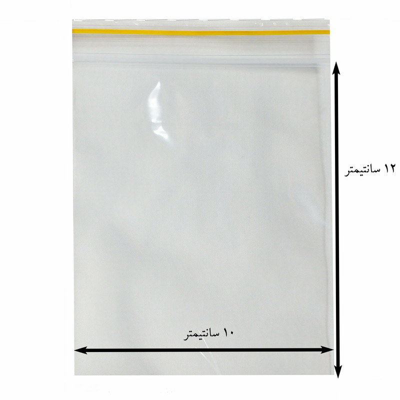 کیسه زیپدار با سایز 10 در 12 . زیپ در قسمت عرض کیسه قرار دارد و اندازه آن 10 سانتیمتر میباشد و طول کیسه 12 سانتیمتر میباشد .