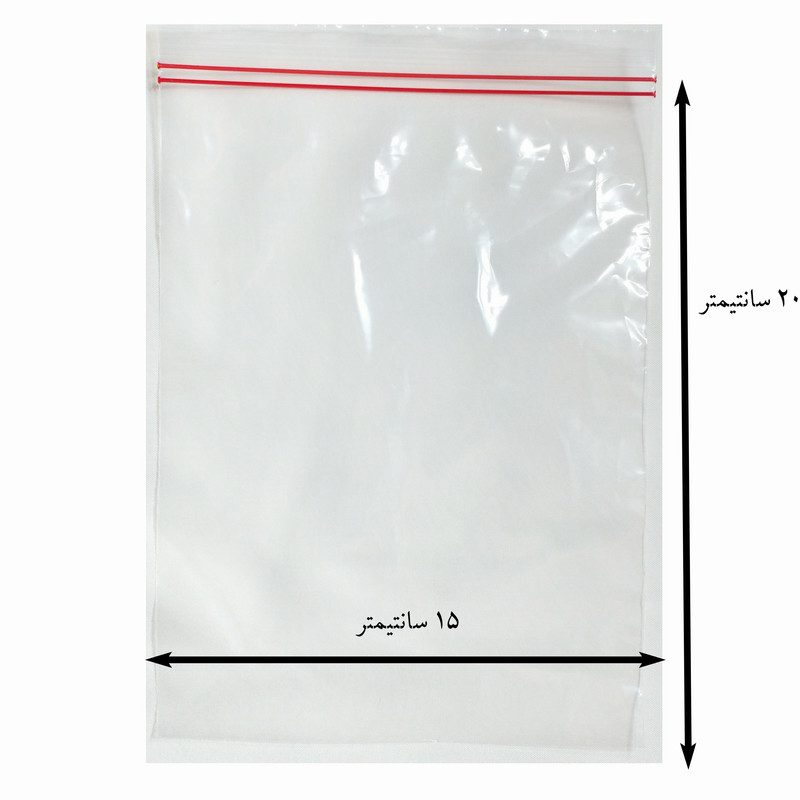 کیسه زیپدار با عرض 15 بطول 20 . زیپ در قسمت عرض 15 سانتیمتری قرار دارد.دارای 2 زیپ برای بسته شدن محکمتر و بسته بندی بهتر .به دلیل رعایت نکات بهداشتی در کارخانه بصورت 100عددی شمارش و در یک کیسه زیپدار بسته بندی شده است .