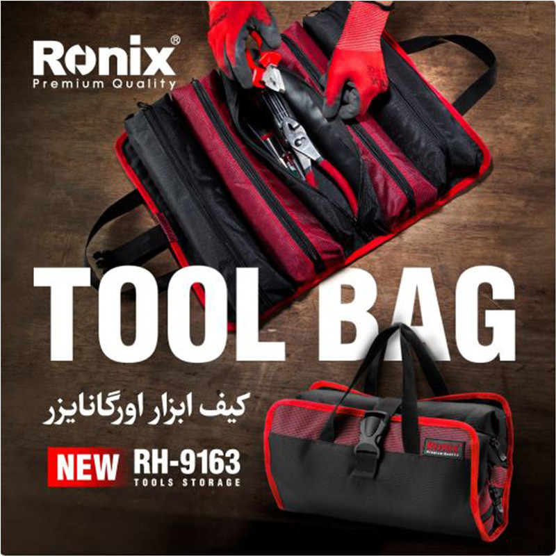 کیف ابزار برزنتی ارگانایزر تاشو رونیکس مدل RH-9163 با استفاده از بهترین متریال برزنت جهت افزایش طول عمر ابزار به بازار ابزارآلات ارائه می شود . شیوه دوخت انجام شده برای این کیف ابزار برزنتی کاملا مدرن بوده و توسط ماشین آلات تمام اتوماتیک انجام می شود .