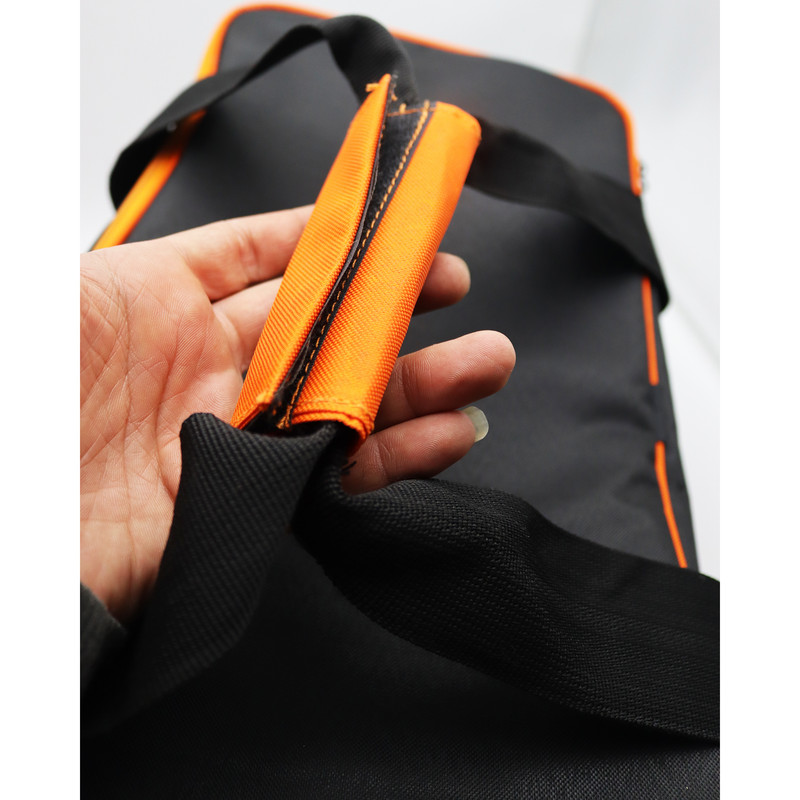 سایر توضیحات | - کیف ابزار یا کیف اینورتر سامکو - دارای 5 محفظه ابزار ( 4 محفظه اطراف و یک محفظه بزرگ 45 سانتیمتری زیپ دار) - طول کیف : 45 سانتیمتر - ارتفاع : 30 سانتیمتر - عرض : 22 سانتیمتر - جنس کیف : برزنت - قابلیت حمل انواع اینورتر تا 250 آمپر این امکان را فراهم می سازد - همچنین فضای ایجاد شده در این نوع کیف باعث تفکیک ابزار آلات کاربردی اعم از انبر جوش، الکترود، عینک، شیشه ماسک، و ابزارآلات کوچک دستی شده است - مقاومت این محصول جهت حمل انواع دستگاه جوش تا 6 کیلوگرم تضمین شده می باشد - در کف این نوع کیف یک لایه پلاستیکی 2.5 میلی متری جهت استحکام بیشتر در مقابل وزن دستگاه به کار برده شده است - دستگیره چسبی نرم برای اسیب نرسیدن به دست در زمان حمل |