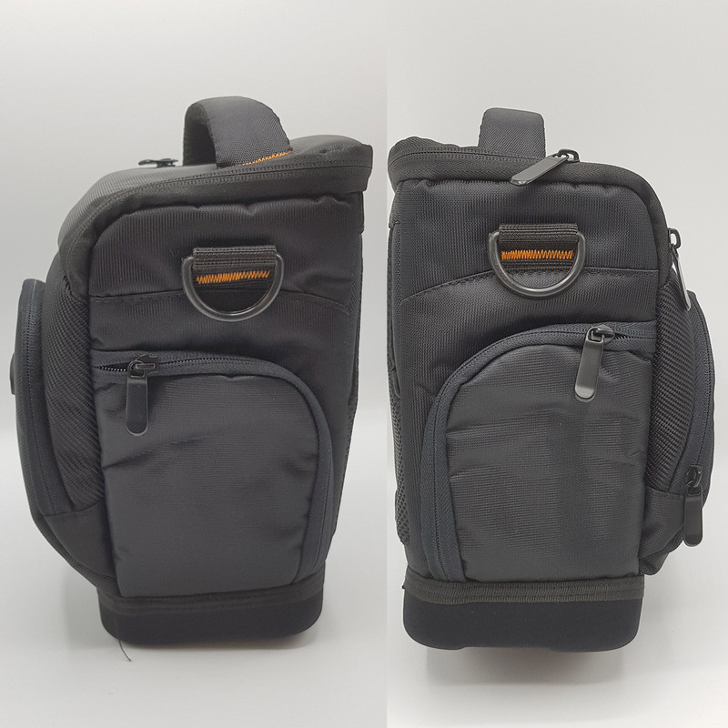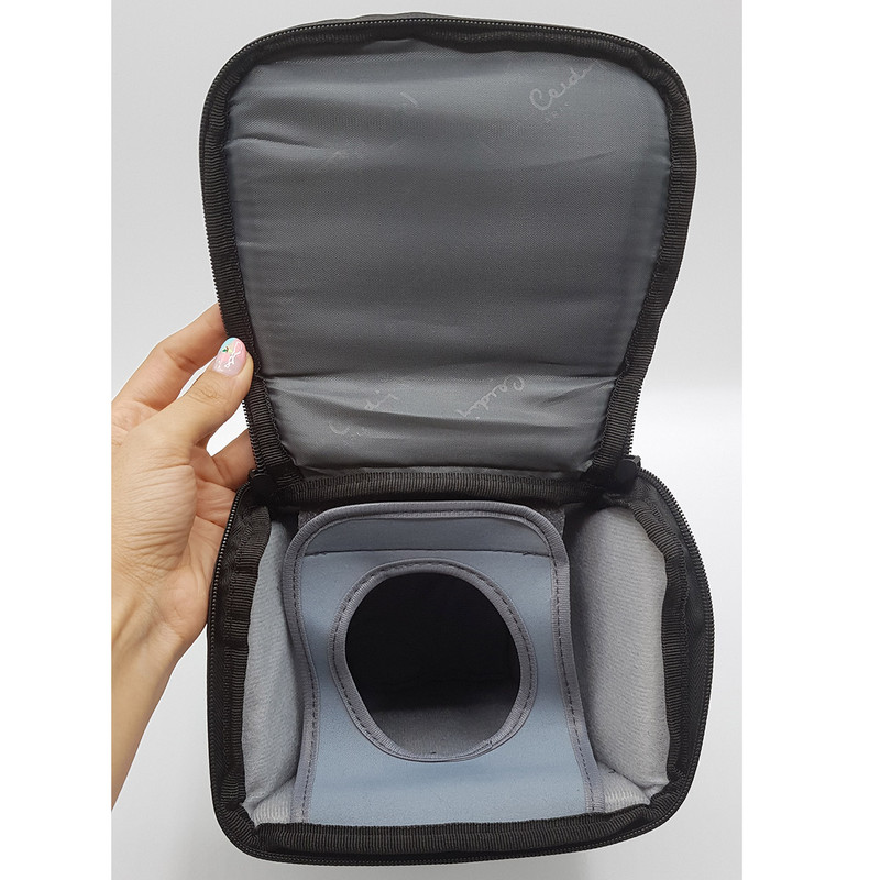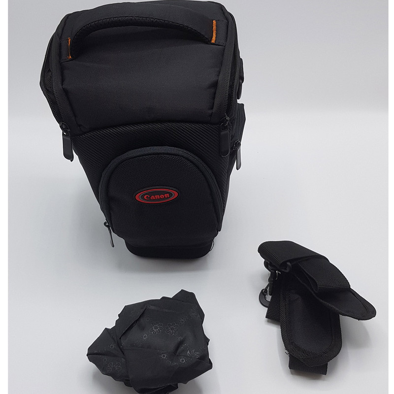 ویژگی ها -----دارای کاور باران -----دارای جیب های جداگانه برای فیلتر و درب لنز و رم و .. ----دارای دو جیب زیپ دار در جلو و دو جیپ در کناره ها -----دارای بند اویز -----دارای پد جدا کننده -----سایز کلی:15×18×26 سانتی متر