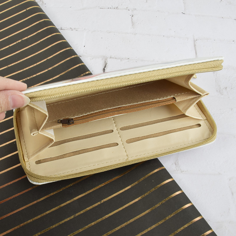 جزئیات | محفظه برای قرار دادن پول و موبایل تعداد 4 شیار اختصاصی برای کارت بانکی دارای جیب زیپ دار جدا برای پول خرد چاپ با کیفیت و رنگ ثابت |