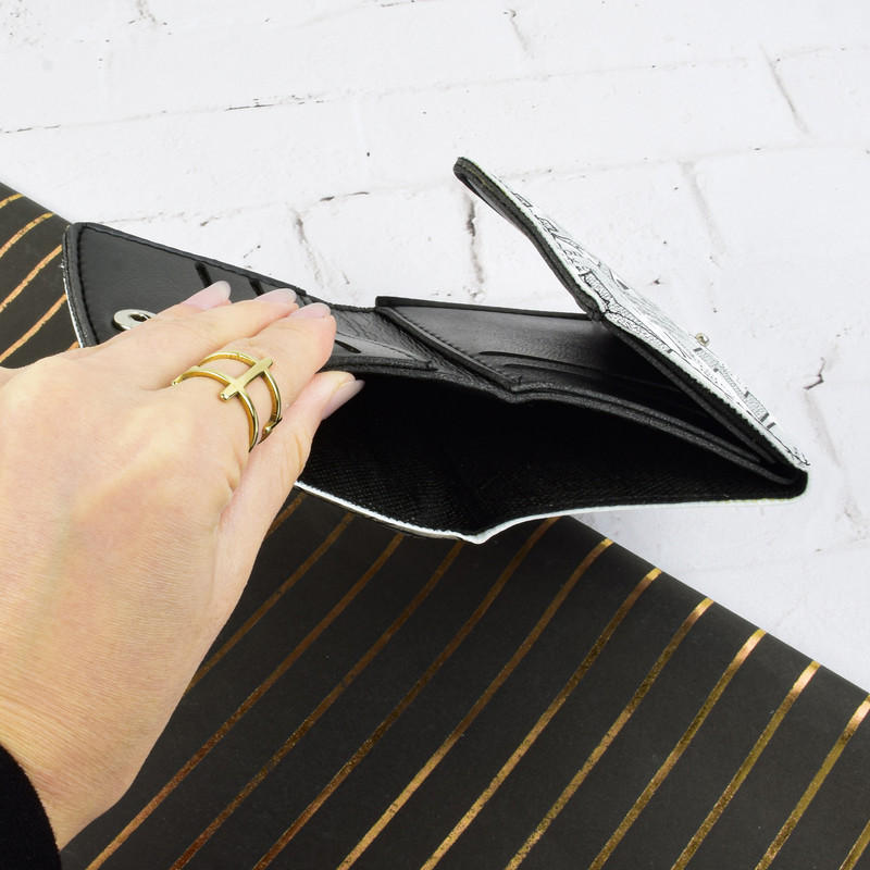 این محصول دارای دو محظفه ی جداگانه برای پول و 4 عدد شیار جداگانه جهت قرار دادن انواع کارت میباشد ، کیفیت دوخت و چاپ این محصول کاملا مناسب است و در کنار فضای بسیار کاربردی و مناسب داخلی که دارد این کالا به انتخابی کاربردی و مناسب تبدیل شده است.
