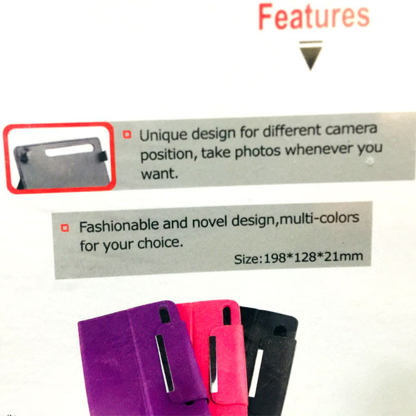 قابلیت ها- دارای روکش چرم مصنوعی - دارای حالت استند برای تایپ کردن و تماشای ویدئو - دسترسی آسان به کلیدها و درگاه‌ها - مناسب تبلت‌های 7 اینچی و آیپد مینی - دارای کش‌هایی برای محکم نگه داشتن تبلت - دارای پوشش داخلی نرم برای محافظت در برابر خط و خش