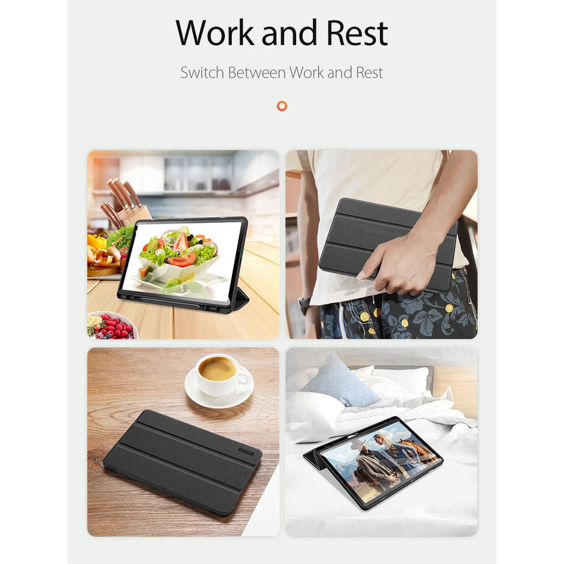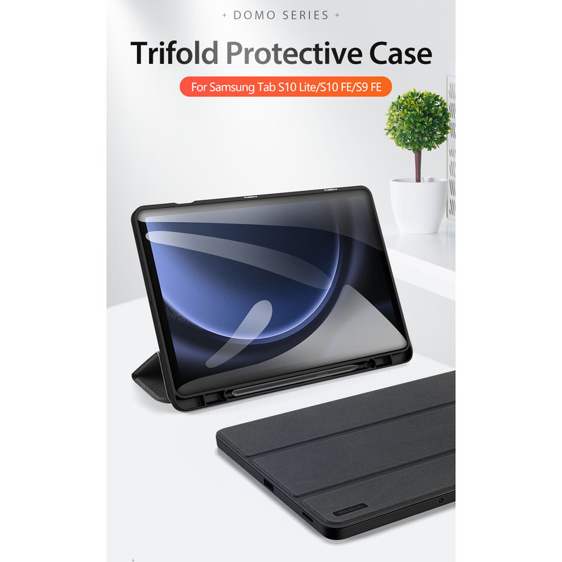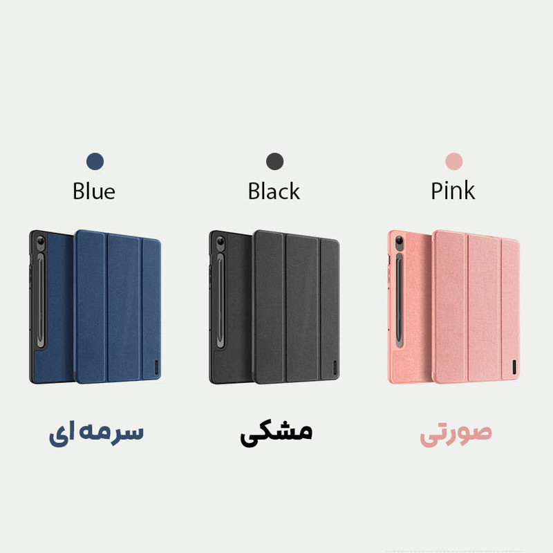 کیف کلاسوری بادیگارد مدل Domo برای تبلت Samsung S10 Lite / S10 FE / S9 FE / S9 با طراحی مدرن و عملکرد چندمنظوره، تجربهای متفاوت از محافظت و کاربری روزمره را ارائه میدهد. این کیف با ساختار مقاوم شامل لبههای نرم TPU، قاب پشتی شفاف و روکش چرمی ضد اثر انگشت، محافظت ۳۶۰ درجهای در برابر ضربه، خط و خش و سقوطهای ناگهانی فراهم میکند. طراحی هوشمند آن شامل قابلیت "Auto Sleep & Wake" است که با باز و بسته شدن درب، صفحهنمایش را بهصورت خودکار روشن یا خاموش میکند و در مصرف انرژی صرفهجویی مینماید. همچنین وجود نگهدارنده قلم S Pen در پشت کیف، امکان حمل و نگهداری ایمن قلم را فراهم کرده و برای کاربران حرفهای بسیار کاربردی است. پایههای چندحالته این کیف امکان استفاده در حالت تایپ، تماشای فیلم، تماس تصویری و مطالعه را در زاویههای مختلف فراهم میسازد. طراحی دقیق و برشهای منطبق با پورتها و دکمهها، دسترسی آسان به تمام امکانات تبلت را تضمین میکند. کیف Domo نهتنها محافظی قدرتمند برای تبلت شماست، بلکه با ظاهر شیک، رنگبندی متنوع و قابلیتهای کاربردی، انتخابی ایدهآل برای کسانی است که به زیبایی، دوام و راحتی اهمیت میدهند.