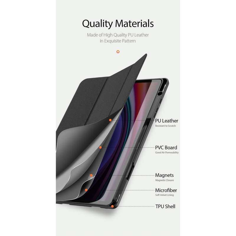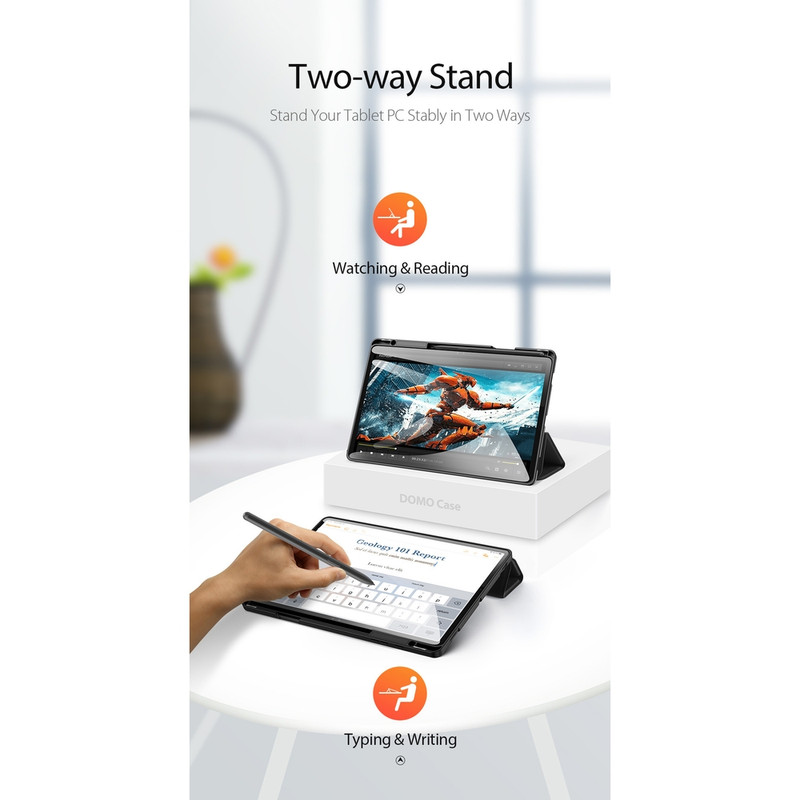 کیف مدل Domo محصول جدید بادیگارد مناسب برای تبلت Samsung S10 Plus می باشد. این کیف یک محافظ کامل برای این تبلت می باشد. که علاوه بر زیبایی مقاومت و استحکام بسیار بالایی در برابر ضربه و زمین خوردن دارد. در این کیف بصورت هوشمند می باشد که با باز و بسته کردن در صفحه نمایش بصورت خودکار خاموش و روشن می شود. همچنین استند چند حالته این کیف امکان قرار گرفتن تبلت در زوایای مختلف را فراهم می کند.