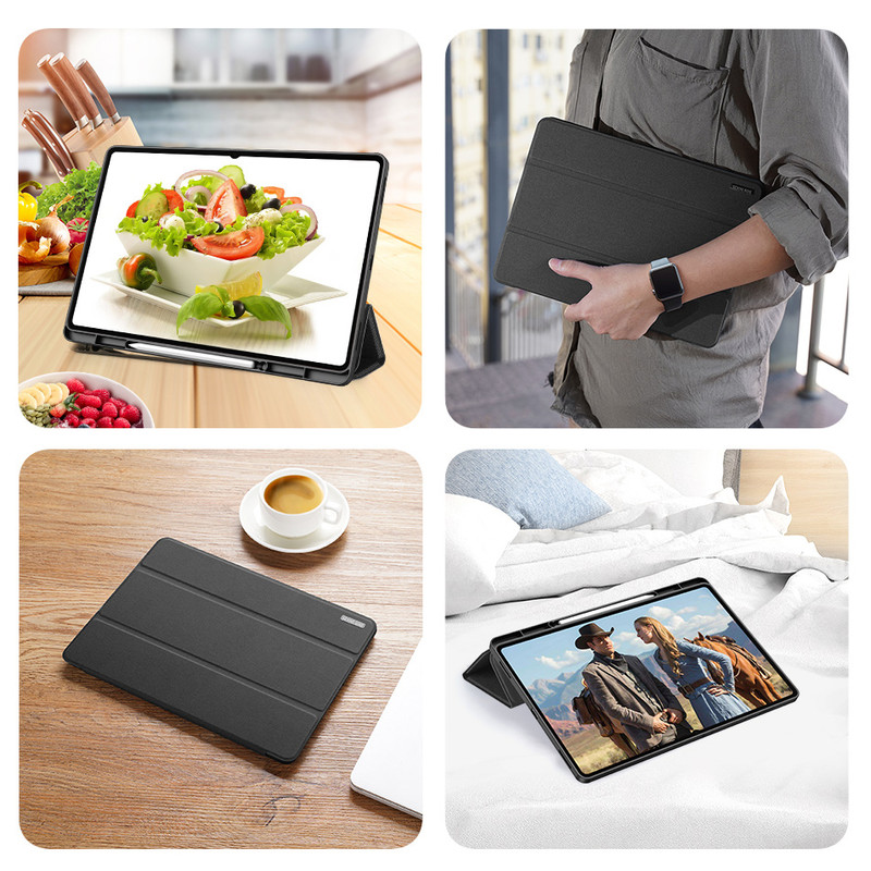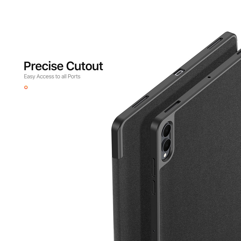 کیف کلاسوری بادیگارد مدل Domo برای تبلت Samsung S11 Ultra 14.6 inch با طراحی مدرن و عملکرد چندمنظوره، تجربهای متفاوت از محافظت و کاربری روزمره را ارائه میدهد. این کیف با ساختار مقاوم شامل لبههای نرم TPU، قاب پشتی شفاف و روکش چرمی ضد اثر انگشت، محافظت ۳۶۰ درجهای در برابر ضربه، خط و خش و سقوطهای ناگهانی فراهم میکند. طراحی هوشمند آن شامل قابلیت "Auto Sleep & Wake" است که با باز و بسته شدن درب، صفحهنمایش را بهصورت خودکار روشن یا خاموش میکند و در مصرف انرژی صرفهجویی مینماید. همچنین وجود نگهدارنده قلم S Pen در پشت کیف، امکان حمل و نگهداری ایمن قلم را فراهم کرده و برای کاربران حرفهای بسیار کاربردی است. پایههای چندحالته این کیف امکان استفاده در حالت تایپ، تماشای فیلم، تماس تصویری و مطالعه را در زاویههای مختلف فراهم میسازد. طراحی دقیق و برشهای منطبق با پورتها و دکمهها، دسترسی آسان به تمام امکانات تبلت را تضمین میکند. کیف Domo نهتنها محافظی قدرتمند برای تبلت شماست، بلکه با ظاهر شیک، رنگبندی متنوع و قابلیتهای کاربردی، انتخابی ایدهآل برای کسانی است که به زیبایی، دوام و راحتی اهمیت میدهند.
