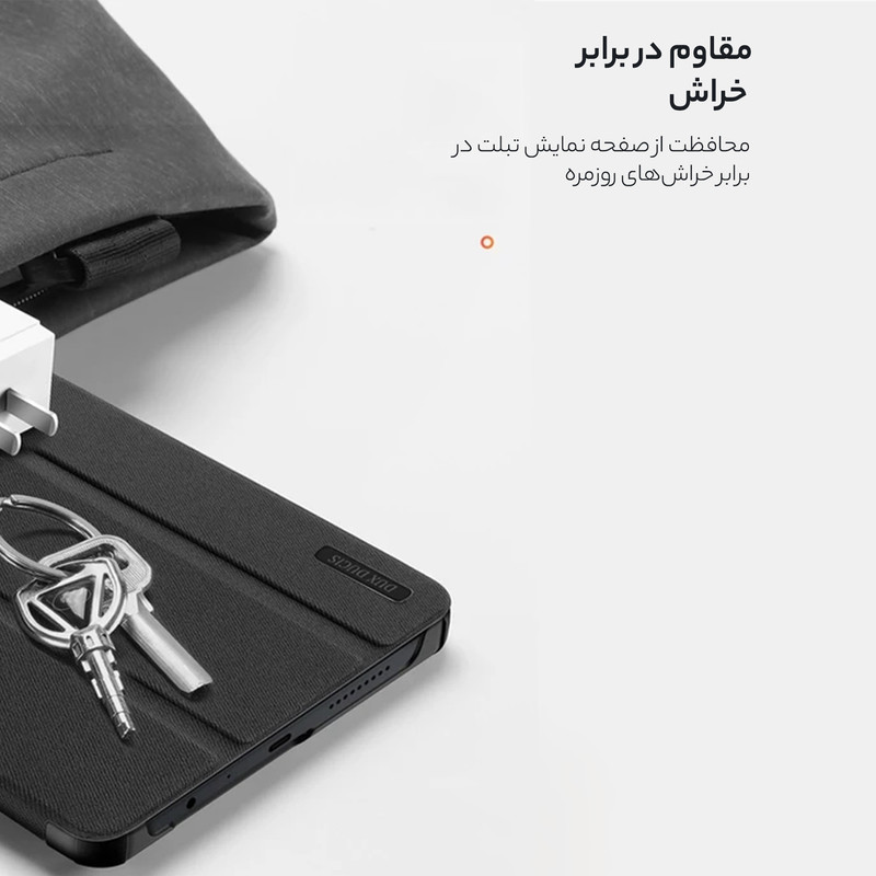 کیف مدل Domo محصول جدید بادیگارد مناسب برای تبلت Xiaomi Redmi Pad SE 8.7 inch می باشد. این کیف یک محافظ کامل برای این تبلت می باشد. که علاوه بر زیبایی مقاومت و استحکام بسیار بالایی در برابر ضربه و زمین خوردن دارد. در این کیف بصورت هوشمند می باشد که با باز و بسته کردن در صفحه نمایش بصورت خودکار خاموش و روشن می شود. همچنین استند چند حالته این کیف امکان قرار گرفتن تبلت در زوایای مختلف را فراهم می کند.
