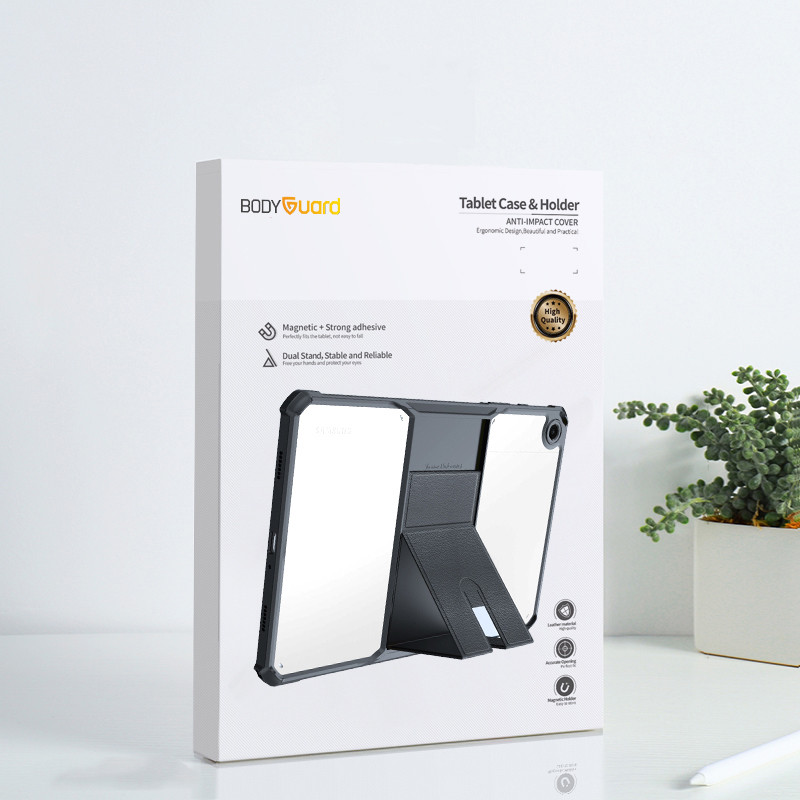 کیف کلاسوری Magi بادیگارد محصول جدید این شرکت می باشد. این محصول در واقع ترکیبی از قاب و کیف می باشد. بدین صورت که قسمت روی کیف قابلیت جدا شدن دارد و می توان به عنوان قاب بدون پوشش صفحه نمایش هم استفاده شود. قسمت استند این محصول نیز 2 حالته می باشد که باعث می شود از تبلت هم بصورت افقی و هم به صورت عمودی استفاده شود.