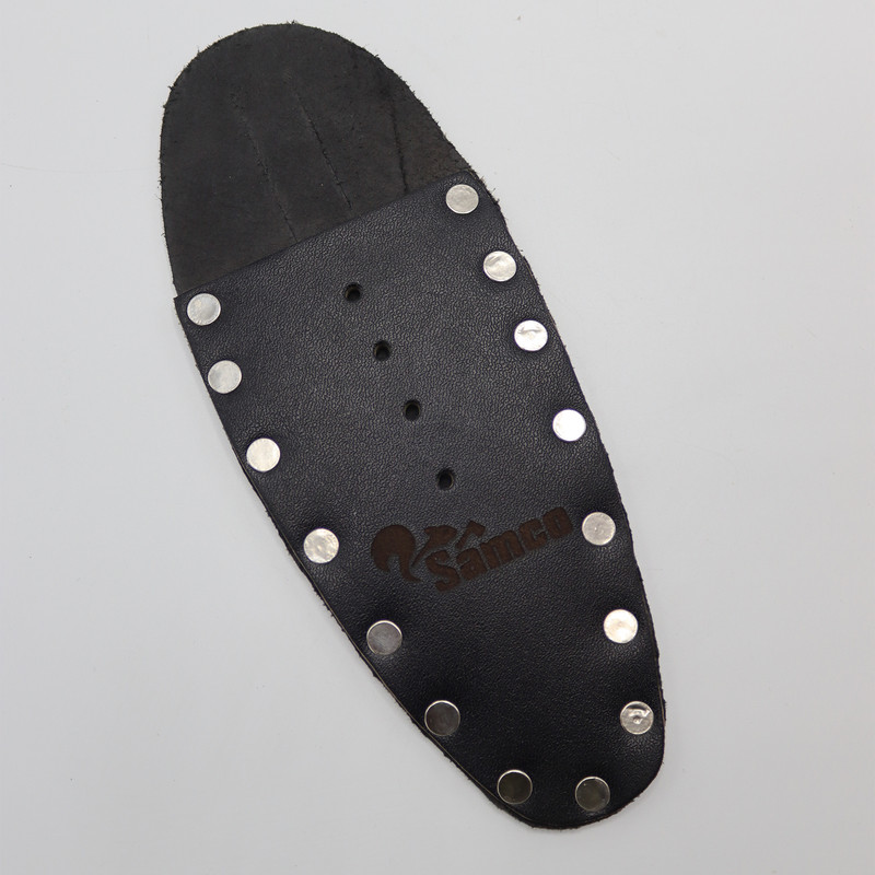 سایر توضیحات- غلاف پهن چاقو سامکو - طول پوشش تیغه : 170 میلیمتر - عرض پوشش پهنای تیغه: 100 میلیمتر - استفاده شده از چرم درجه یک - قابلیت اتصال به کمربند در قسمت بالایی غلاف