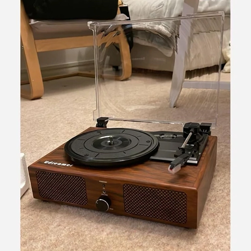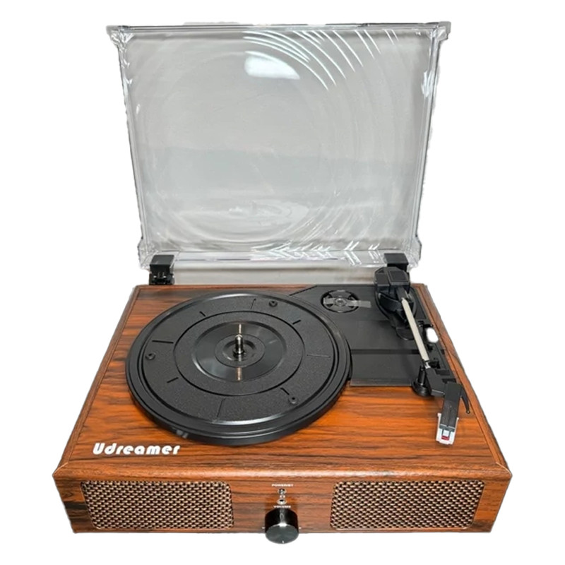 گرامافون اودریمر مدل UD001 یک پخشکننده خانگی کلاسیک و زیبا است که برای عاشقان صفحات وینیل و موسیقی نوستالژیک طراحی شده. این دستگاه در قالب یک کیف دستی با بدنهای زیبا از جنس چوب، بهآسانی قابل حمل است. ابعاد کلی آن ۳۲x۲۴x۱۲ سانتیمتر و وزن ۲.۲ کیلوگرم، این گرامافون را به یک سیستم صوتی جمعوجور و سبک تبدیل میکند.