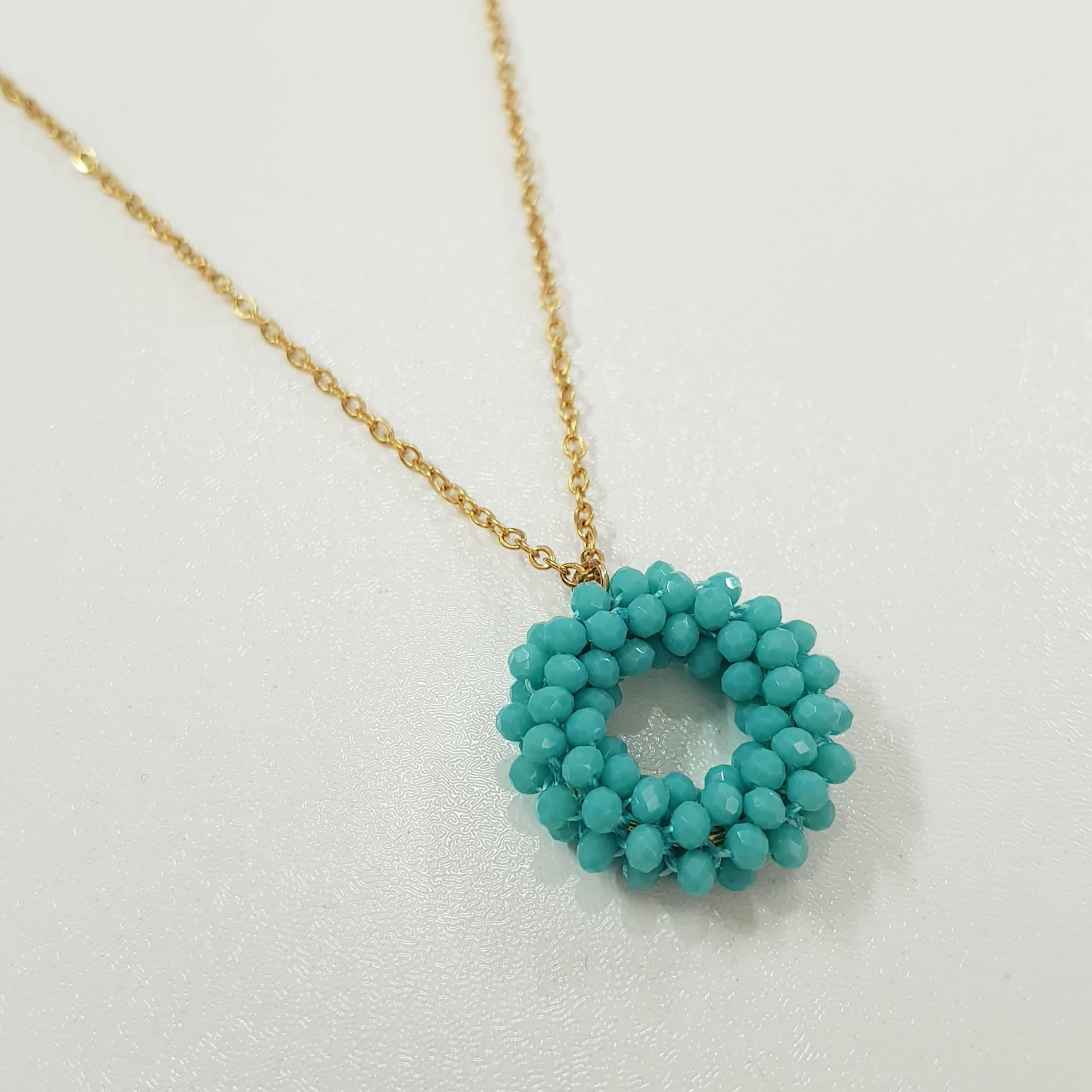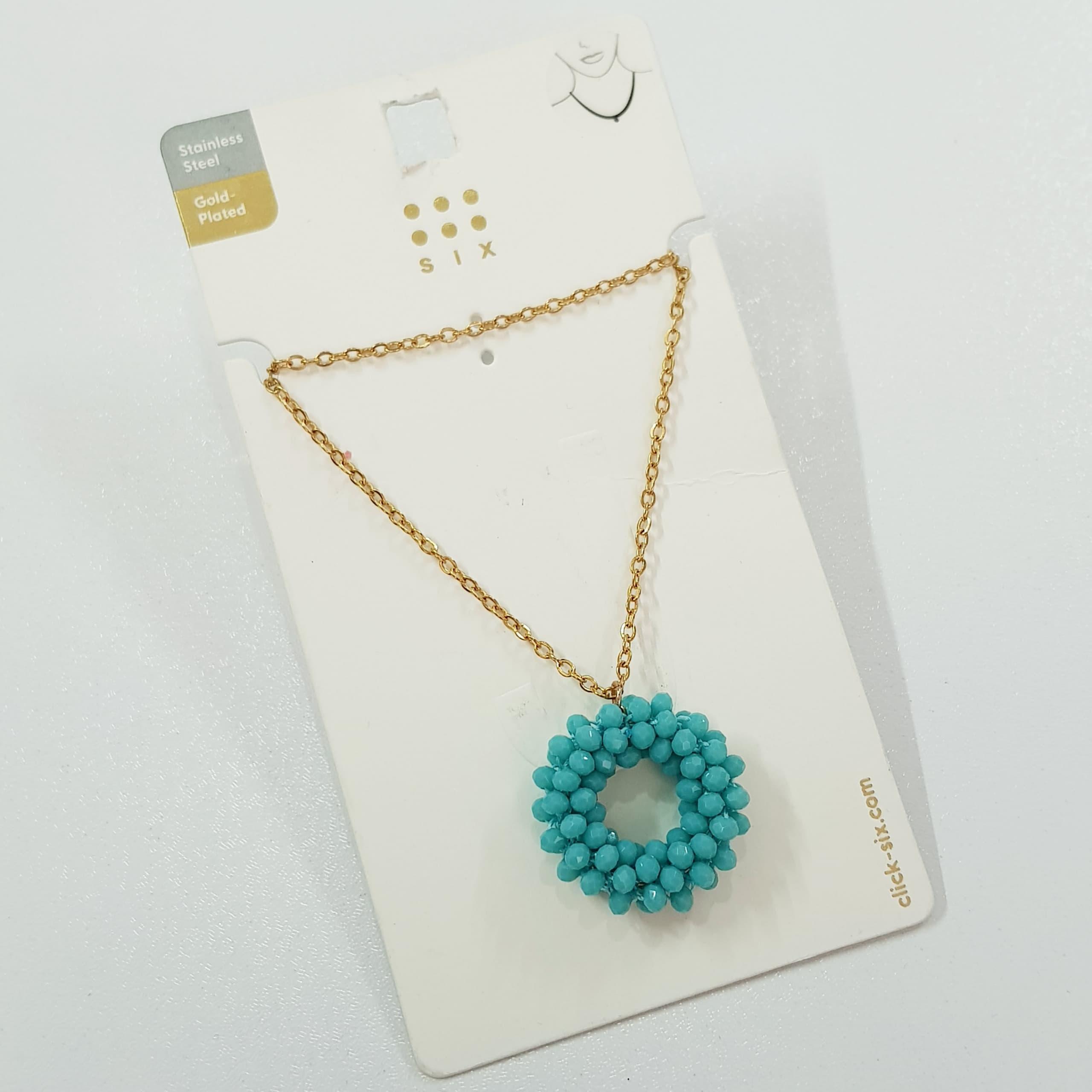 گردنبند استیل طلایی آویز منجوق رنگی ، کار فوق العاده زیبا و حرفه ای از سری لیمیتد ادیشن Six رنگ ثابت و ضد حساسیت برند Six آلمان