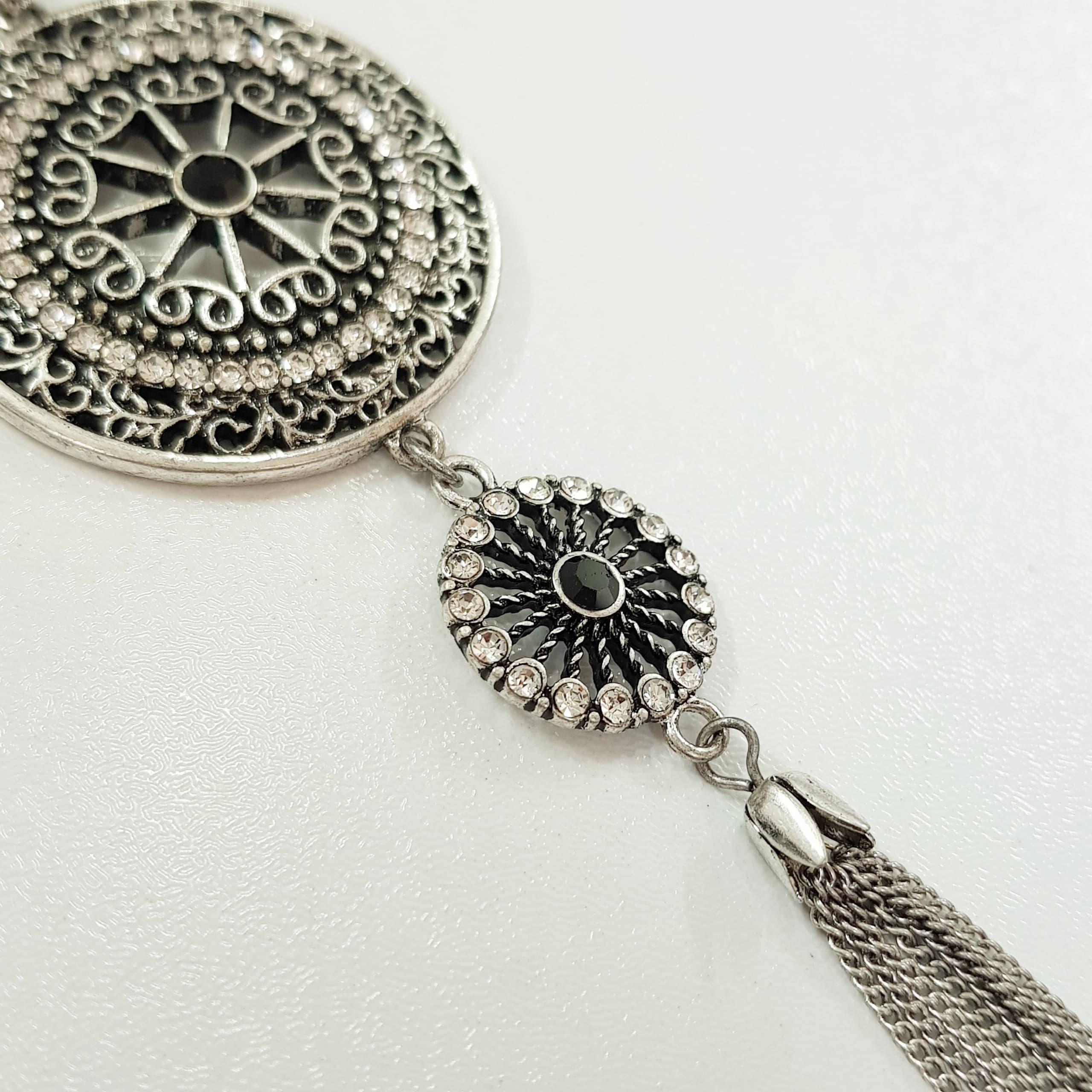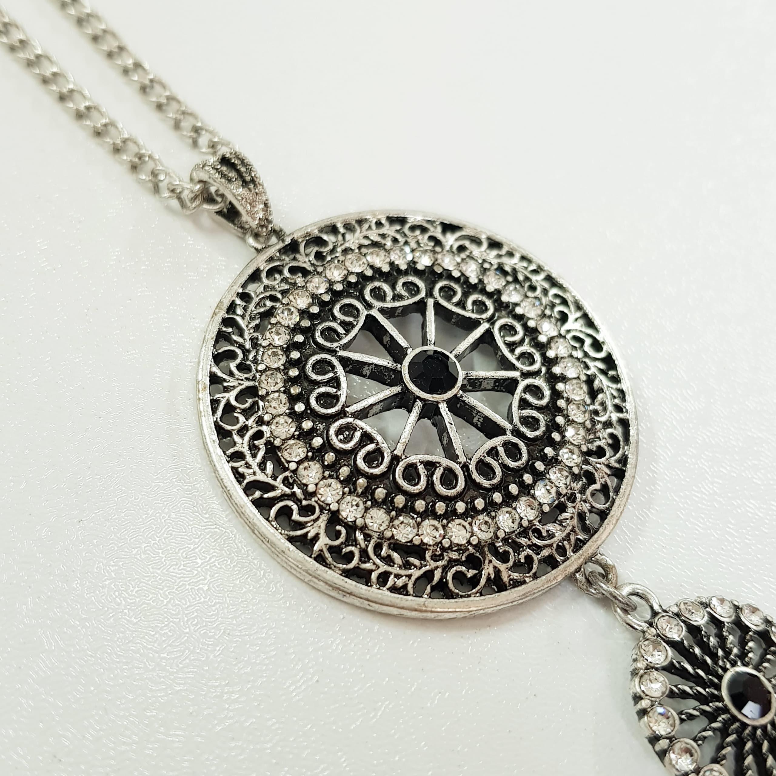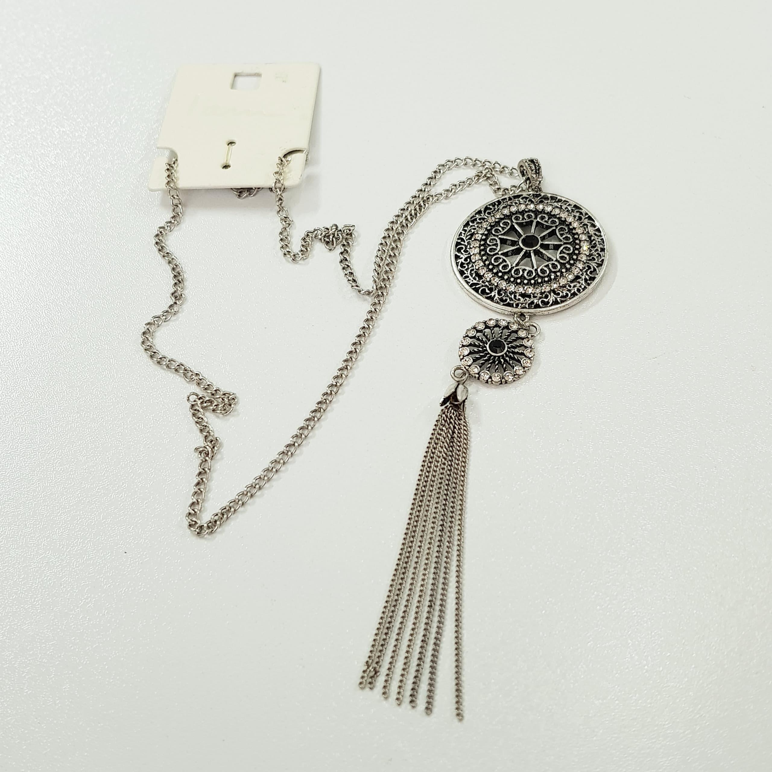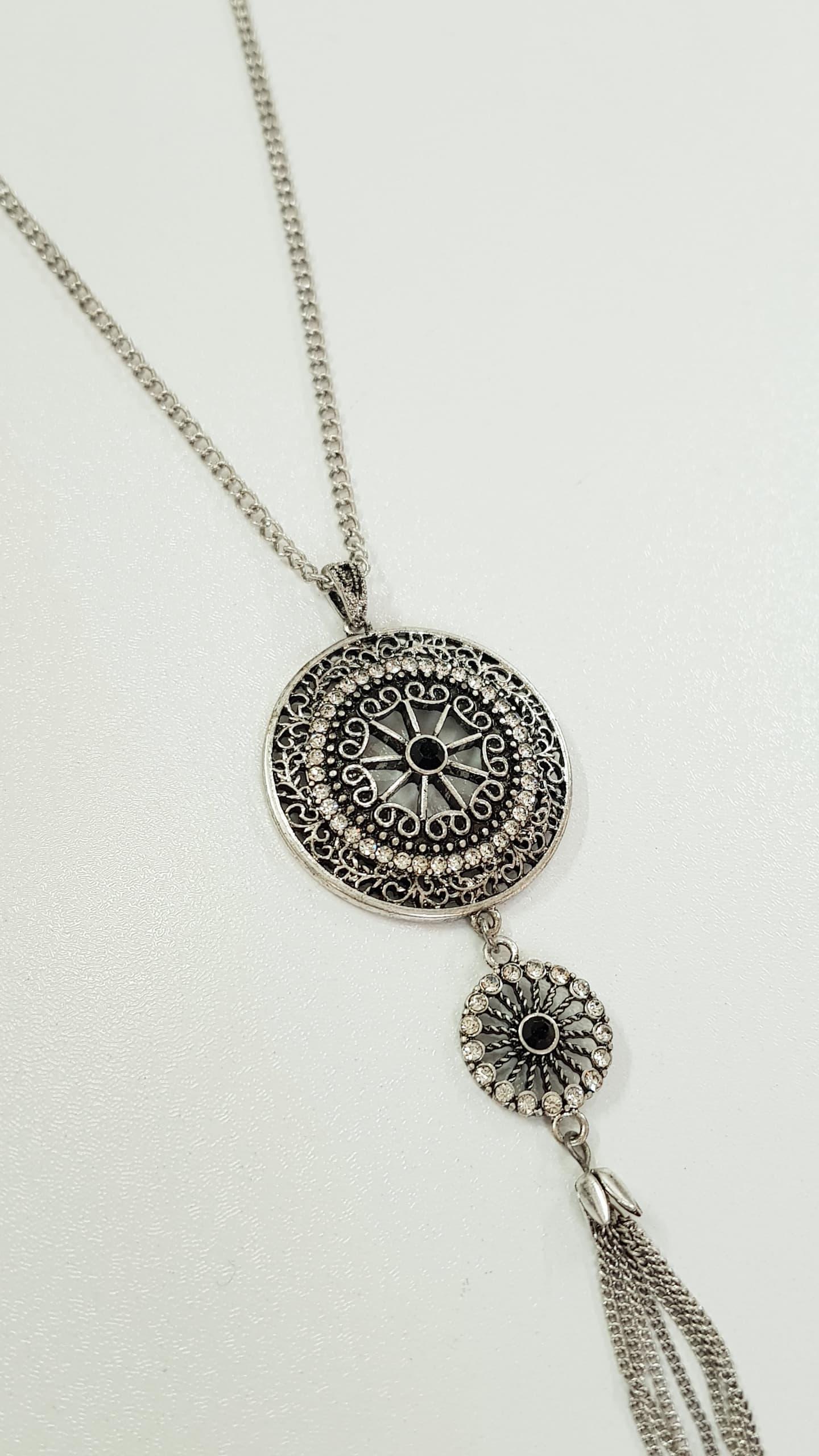 گردنبند رولباسی نقره ای سیاه قلم آویز نگین دار ، زنجیر بلند ، بسیار زیبا و ترند ضد حساسیت برند iam تحت لیسانس آمریکا