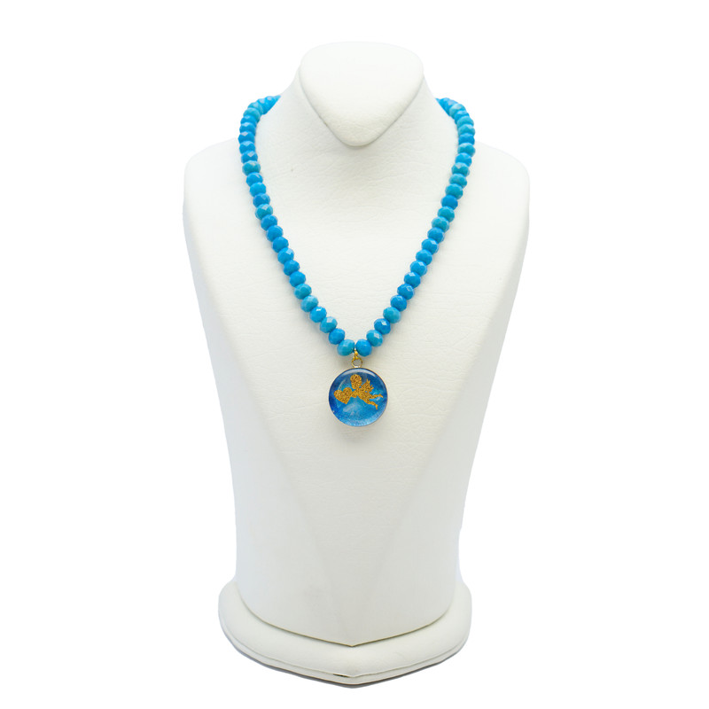 این گردنبند زیبا با ترکیب نماد احساسی قلب و فرشته، در کنار سنگهای آرامبخش اونیکس آبی، انتخابی خاص برای بانوانیست که به نمادهای معنوی و احساسی علاقه دارند. پلاک طلایی با طراحی فرشته و قلب، با روکشی مقاوم از طلا و پوششی از رزین براق محافظت شده است که جلوهای ماندگار و درخشان به آن میبخشد. فلزات بهکاررفته در این گردنبند ضدحساسیت هستند و در برابر رطوبت و تعریق تغییر رنگ نمیدهند. مناسب برای استفاده روزمره یا هدیهای احساسی و ارزشمند.
