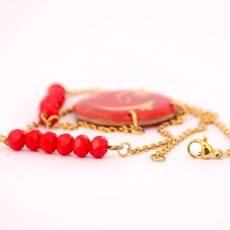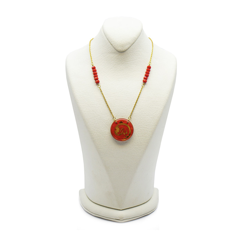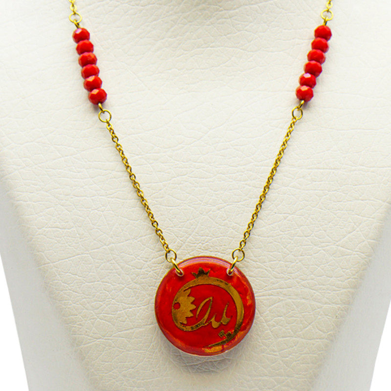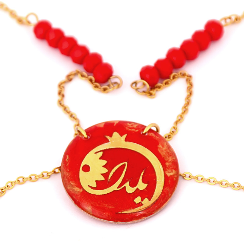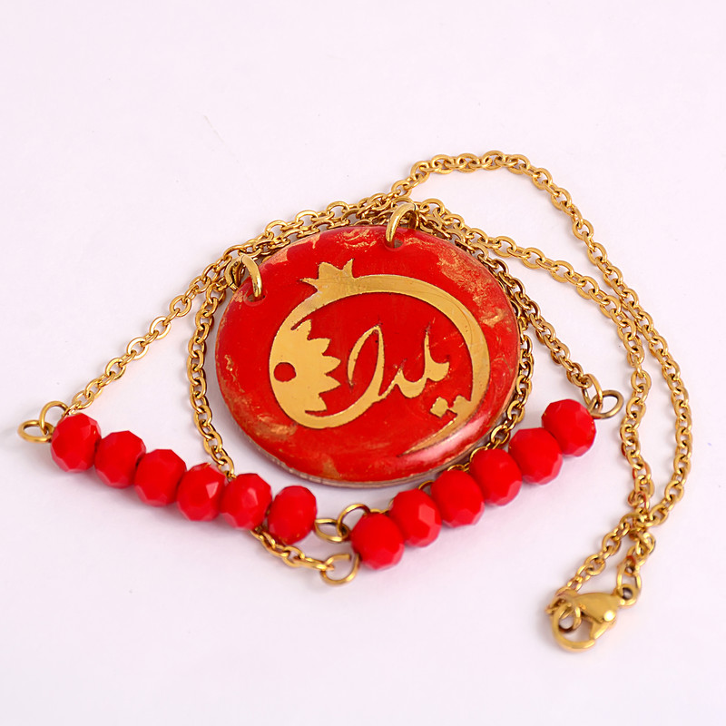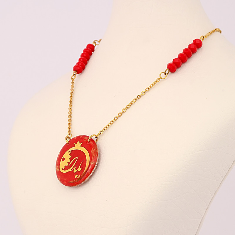 گردنبند طرح یلدا زیوری زیبا، نمادین و چشمنواز است که با استفاده از سنگهای قرمز و آویز دستساز، جلوهای خاص ایجاد میکند. در مرکز گردنبند، آویزی دایرهای قرار دارد که درون آن طرح نوشته یلدا از جنس ورق طلا با ظرافت و دقت کار شده است. برای محافظت و افزایش ماندگاری، این طرح داخل رزین شفاف قرار گرفته تا در برابر خطوخش و رطوبت مقاوم باشد.