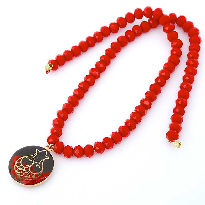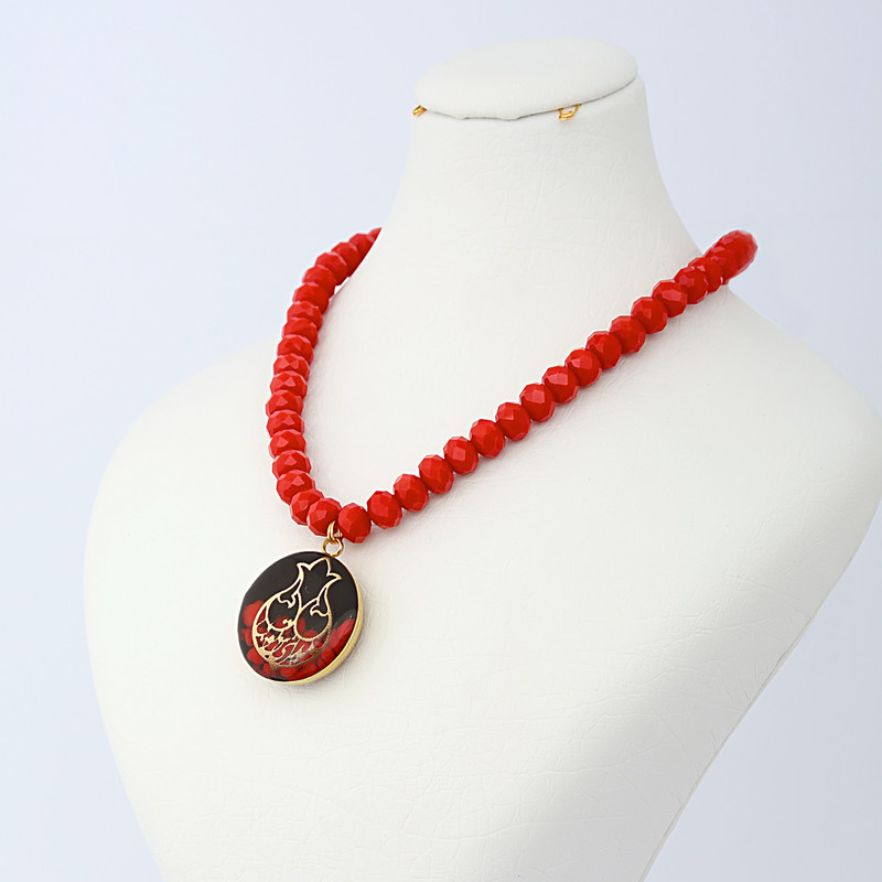 گردنبند شب یلدا با زنجیر سنگ های قرمز رنگ یکی از زیبا ترین محصولات دست ساز می باشد که در آن با روکش طلا باکیفیت ، این اثر جذاب تولید شده است. این محصول کاملا دست ساز میتواند هدیه ای با ارزش برای یک دوست و یا همراه مخصوصا برای هدیه دادن در شب یلدا باشد . تمام تلاش ماخلق زیبایی های است ماندگار و متفاوت برای کسانی که طالب داشته هایی منحصر به فرد اند . شکل انار و کلمه شب یلدا ساخته شده از روکش طلای 24 عیار که درخشندگی خیلی محسور کننده ای به گردنبند می بخشند. گردنبند انار با طلای 24 عیار روکش شده و دقت بسیار بالایی در ساختار بدنه و نگین دارد . یکی دیگر از ویژگی های این محصول زنجیر آن است که کیفیت بالایی دارد و طول آن 46سانتی متر است و براحتی می توان روی لباس های بیرون یا از داخل استفاده کرد تا کامل چشم نوازی کند و با همه انواع لباس ها ، خیلی عالی بنظر خواهد رسید.ولی بیشتز از داخل لباس ( گردنی) استفاده میشود. این محصول گزینه بسیار مناب و با صرفه برای هدیه دادن در شب یلدا می باشد.