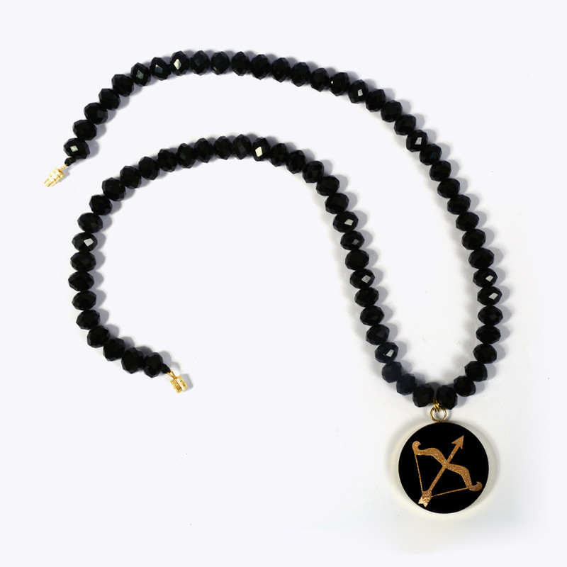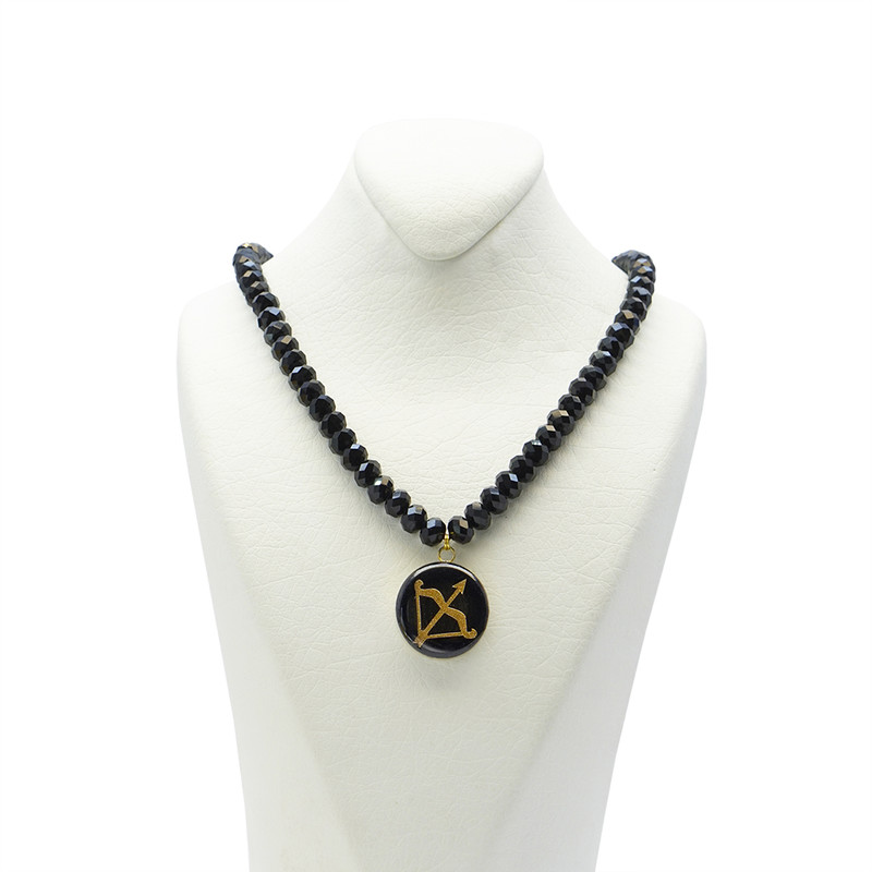 سمبل ماه آذر تیرکمان است و عنصر وجودشان محصولات دستساز آلتین هنر، حس و انرژی بی نظیر هنر ایرانی را در گردنبند اونیکس ماه آذر خلاصه کرده است. درخشش ورق طلای طرح تیرکمان در وسط گردنبند سنگ زیبای اونیکس ، می تواند هر چشمی را خیره کند. این گردنبند مناسب استفاده روزمره و مجلسی است که به خاطر رنگ مشکی آن با هر نوع لباس و رنگ و پارچه ای بر تن شما مینشیند. کیفیت مناسب و جزئیات محسور کننده این محصول می تواند شما را منحصر به فرد به نمایش بگذارد. ما برای زیبایی شما ارزش قائلیم و اعتقاد داریم که زیبایی حق شماست. تنها طلای استفاده شده در این محصول ، سمبل آذر می باشد که از جنس ورق نازک طلای 24 عیار به ضخامت 5 میکرون بر روی لایه ای پلیمری قرار گرفته شده و رویه آن را پوشش رزینی پوشانده است.