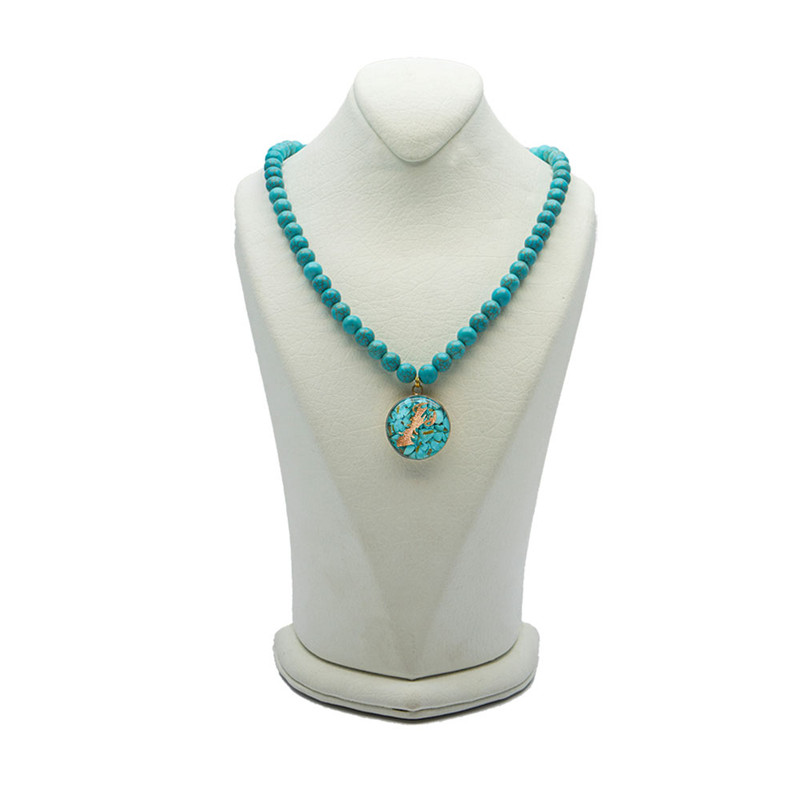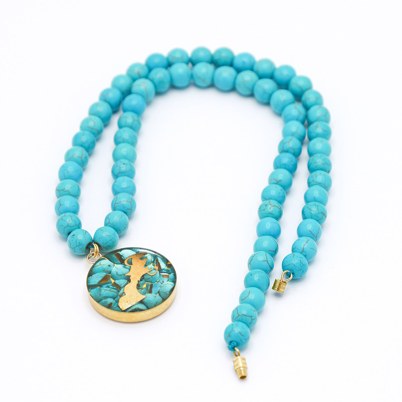 محصولات دستساز آلتین هنر، حس و انرژی بی نظیر هنر ایرانی را در گردنبند فیروزه ماه بهمن خلاصه کرده است. درخشش ورق طلای طرح مرد و دلو در وسط گردنبند سنگ خوش رنگ فیروزه، همیشه مثل مشعل آتش در حال شعلهور شدن است. در تنوع رنگ مشکی از سنگ انیکس سیاه بجای سنگ فیروزه استفاده شده است. کیفیت مناسب و جزئیات مسحور کننده این محصول می تواند شما را منحصر به فرد به نمایش بگذارد. ما برای زیبایی شما ارزش قائلیم و اعتقاد داریم که زیبایی حق شماست.