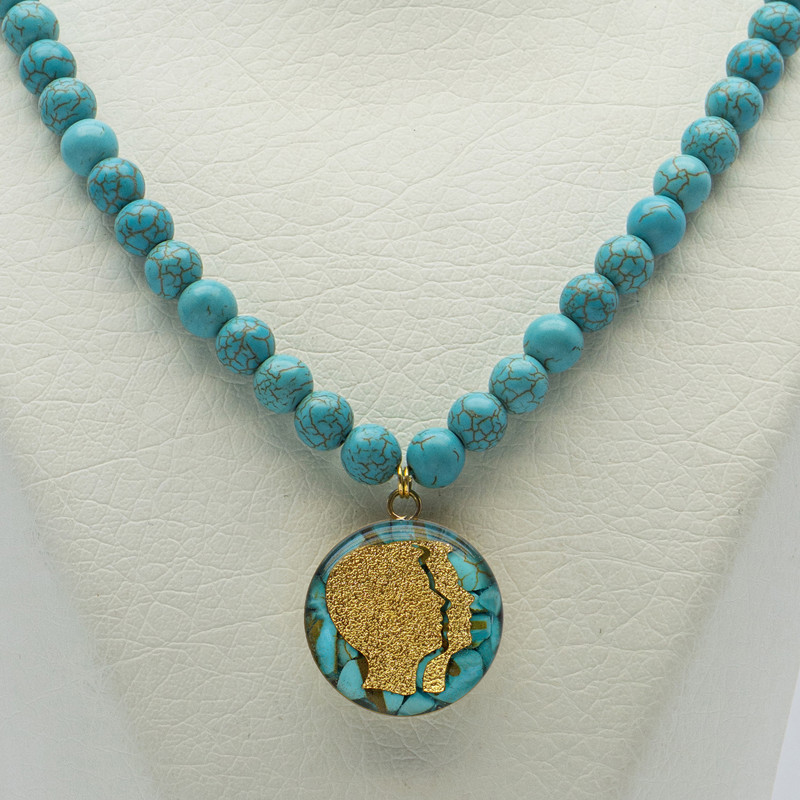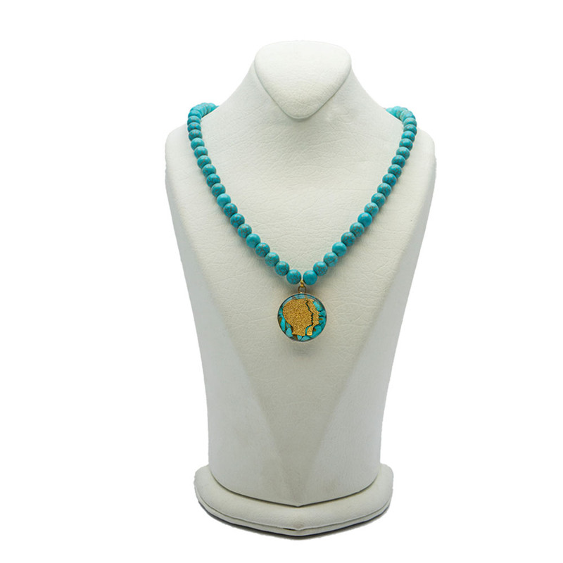 این گردنبند به علت سنگ فیروزه مناسب استفاده روزمره است و با هر نوع لباس و رنگ و پارچه ای بر تن شما مینشیند.