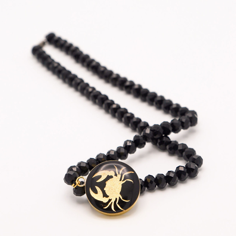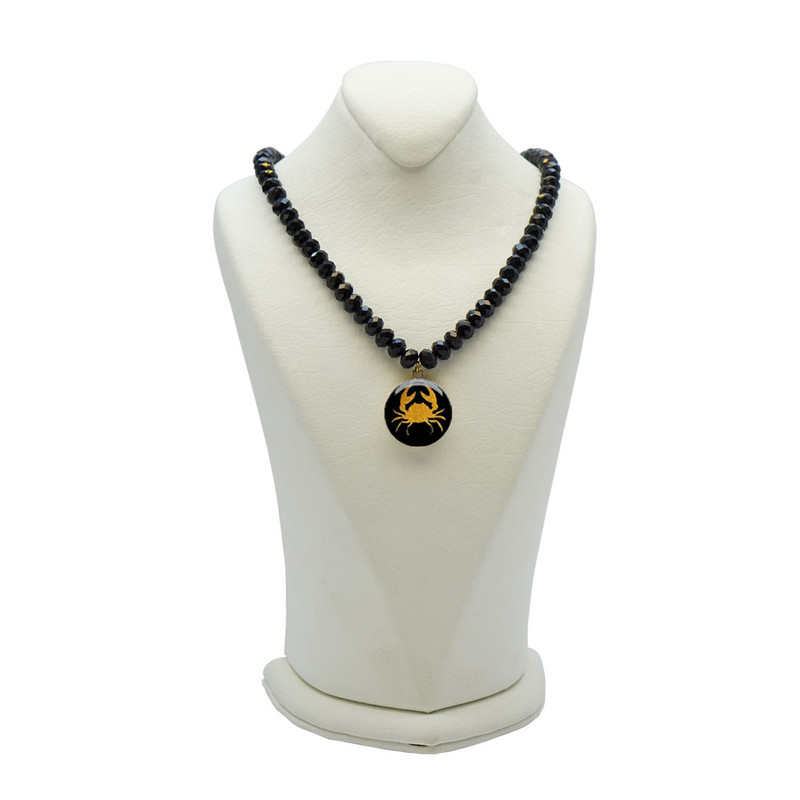 سنگ اونیکس سیاه، سنگی گرانقیمت، زیبا و خوش فرم است که در کشورهای برزیل، کالیفرنیا، هند و اروگوئه فراوان یافت میشود. خواص درمانی این سنگ با عنوان مبارز قدرتمند به شما کمک میکند تا الگوهای ذهنی منفی ناشی از نگرانی های شدید و احساسات سمی و ترس متوقف شوند. سمبل ماه تیر خرچنگ است و عنصر وجودشان هوا محصولات دستساز آلتین هنر، حس و انرژی بی نظیر هنر ایرانی را در گردنبند اونیکس ماه تیر خلاصه کرده است. درخشش ورق طلای طرح خرچنگ آب در وسط گردنبند سنگ زیبای اونیکس ، می تواند هر چشمی را خیره کند. این گردنبند به علت انرژی درمانی سنگ اونیکس مناسب استفاده روزمره و مجلسی است که به خاطر رنگ مشکی آن با هر نوع لباس و رنگ و پارچه ای بر تن شما مینشیند. کیفیت مناسب و جزئیات محسور کننده این محصول می تواند شما را منحصر به فرد به نمایش بگذارد. ما برای زیبایی شما ارزش قائلیم و اعتقاد داریم که زیبایی حق شماست. تنها طلای استفاده شده در این محصول ، سمبل تیر می باشد که از جنس ورق نازک طلای 24 عیار به ضخامت 5 میکرون بر روی لایه ای پلیمری قرار گرفته شده و رویه آن را پوشش رزینی پوشانده است.