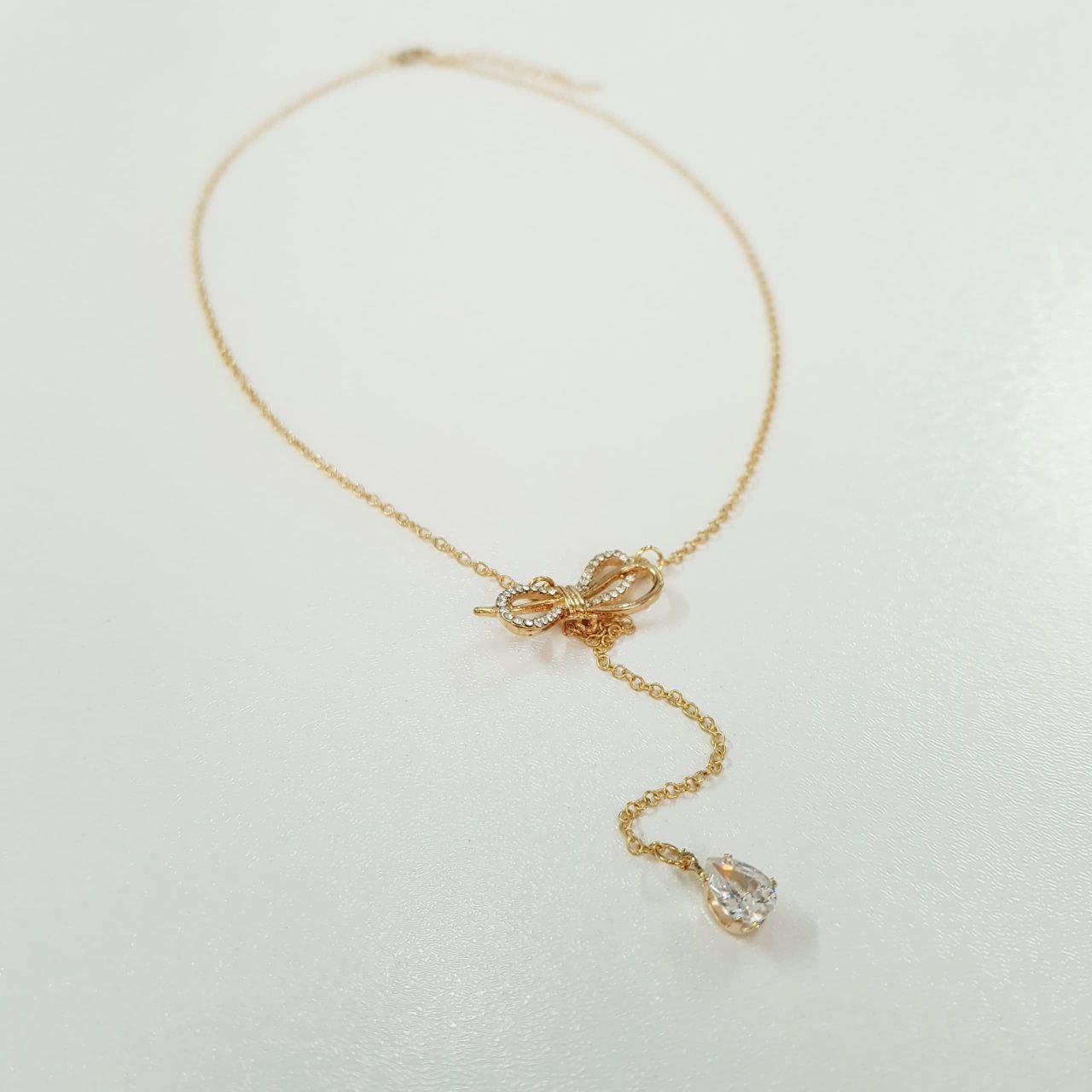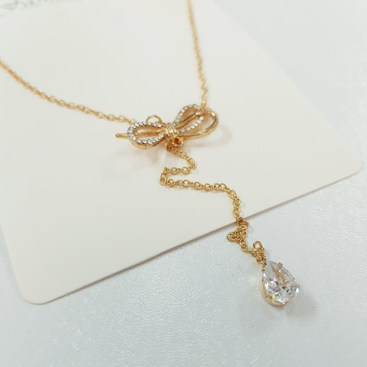 گردنبند مجلسی طلایی آویز دار ، بسیار ظریف و زیبا برند وارداتی Fashion Jewelry