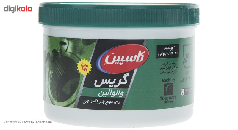 محصول فوق یکی از تولیدات شرکت ایرانی «کاسپین» (Caspian) است که در ظرف‌هایی پلاستیکی و با وزنی معادل 454 گرم تولید می‌شود. این گریس تحت عنوان مدل «والوالین» (Valvoline) به بازار عرضه می‌شود و بیشترین مورد استفاده از آن روانکاری بلبرینگ‌های چرخ است. این محصول می‌تواند در کنار روانکاری، نقشی محافظتی داشته باشد و از قطعات دربرابر خوردگی و زنگ‌زدگی محافظت کند. این گریس از نوع نمره 4 بوده و بر پایه سدیم تولید می‌شود. از این محصول نباید در دمای بیش از 100 درجه سانتی‌گراد استفاده شود؛ چراکه دچار افت کیفیت می‌شود و نمی‌تواند به‌خوبی روانکاری را انجام دهد. این گریس دربرابر آب مقاوم است و ماندگاری طولانی دارد. روانکاری قطعات اهمیت بسیار زیادی دارد و برای همین منظور از انواع روغن‌ها و گریس‌ها استفاده می‌شود. ساختار گریس‌ها به‌گونه‌ای است که حالتی متراکم‌تر دارند و می‌توانند در شرایط سخت و طولانی‌مدت مورد استفاده قرار گیرند. شرکت کاسپین محصول فوق را از روغن باکیفیت پایه 1 تولید می‌کند.