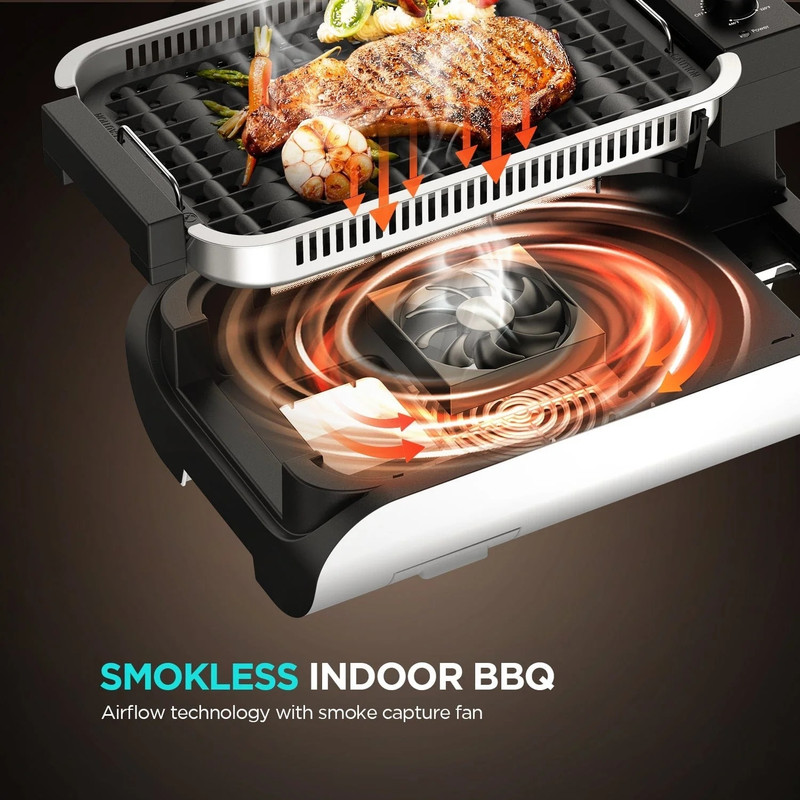همراه با یک فن دود 3200 دور در دقیقه و یک درب شیشه ای شفاف برای از بین بردن بو و بخارات چرب، به طور موثر محیط پخت و پز امن تری را هم در داخل و هم در خارج فراهم می کند، با این گریل می توانید از طعم های لذیذ در گریل لذت ببرید.