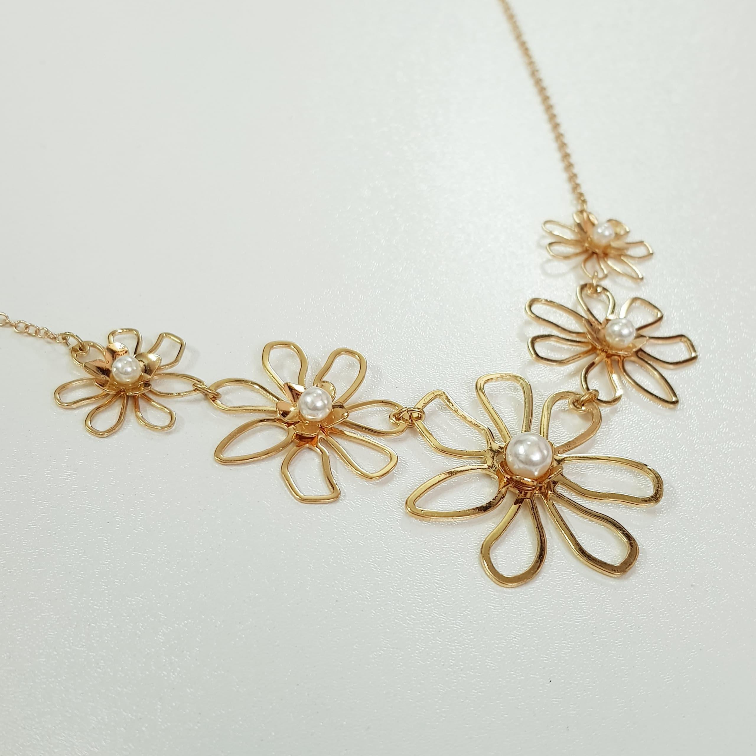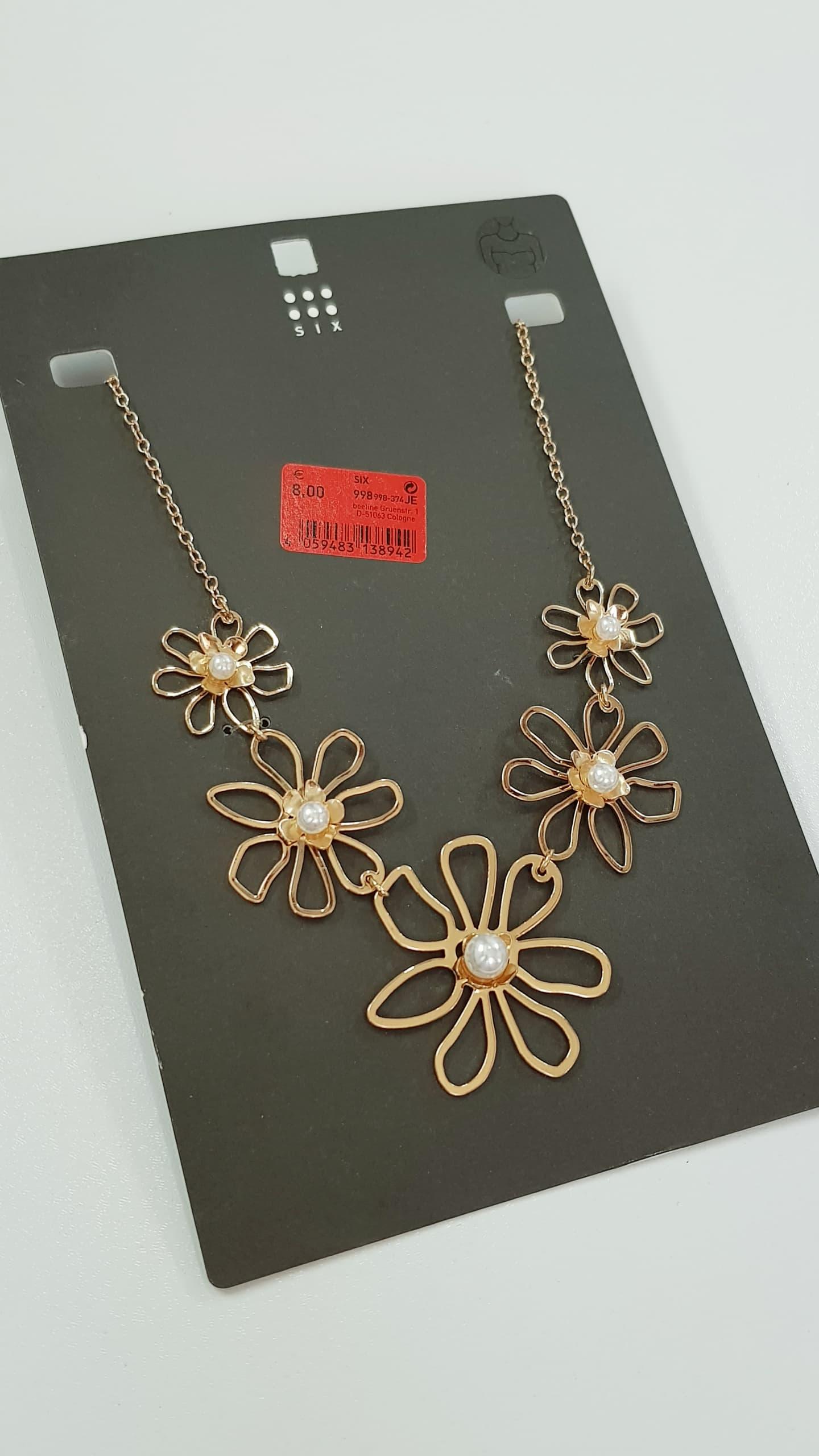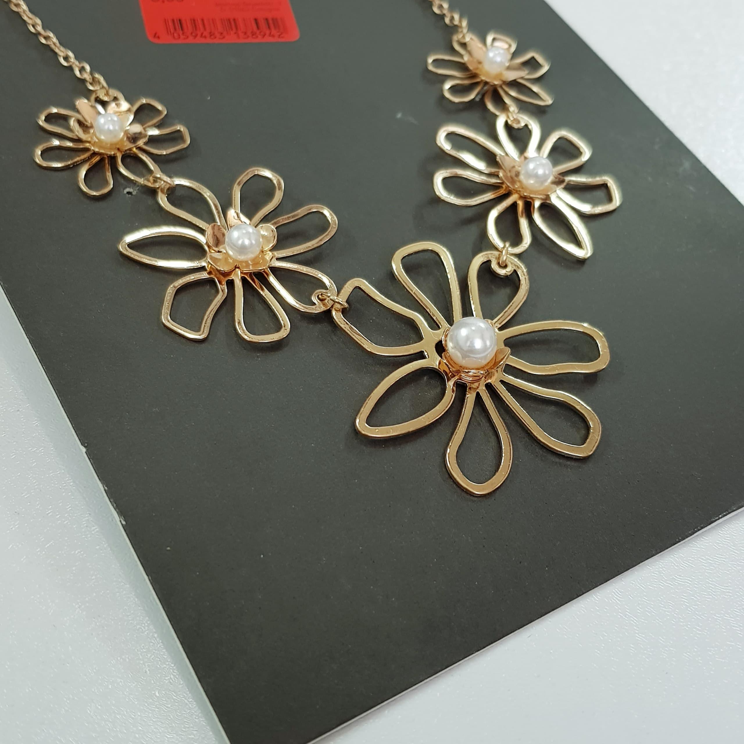 گلوبند سینه ریز مجلسی گل های طلایی کار شده با مروارید ، کار فوقالعاده زیبا و درخشان، ضد حساسیت برند Six تحت لیسانس آلمان