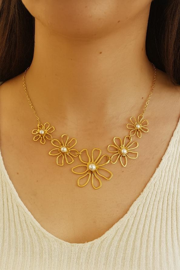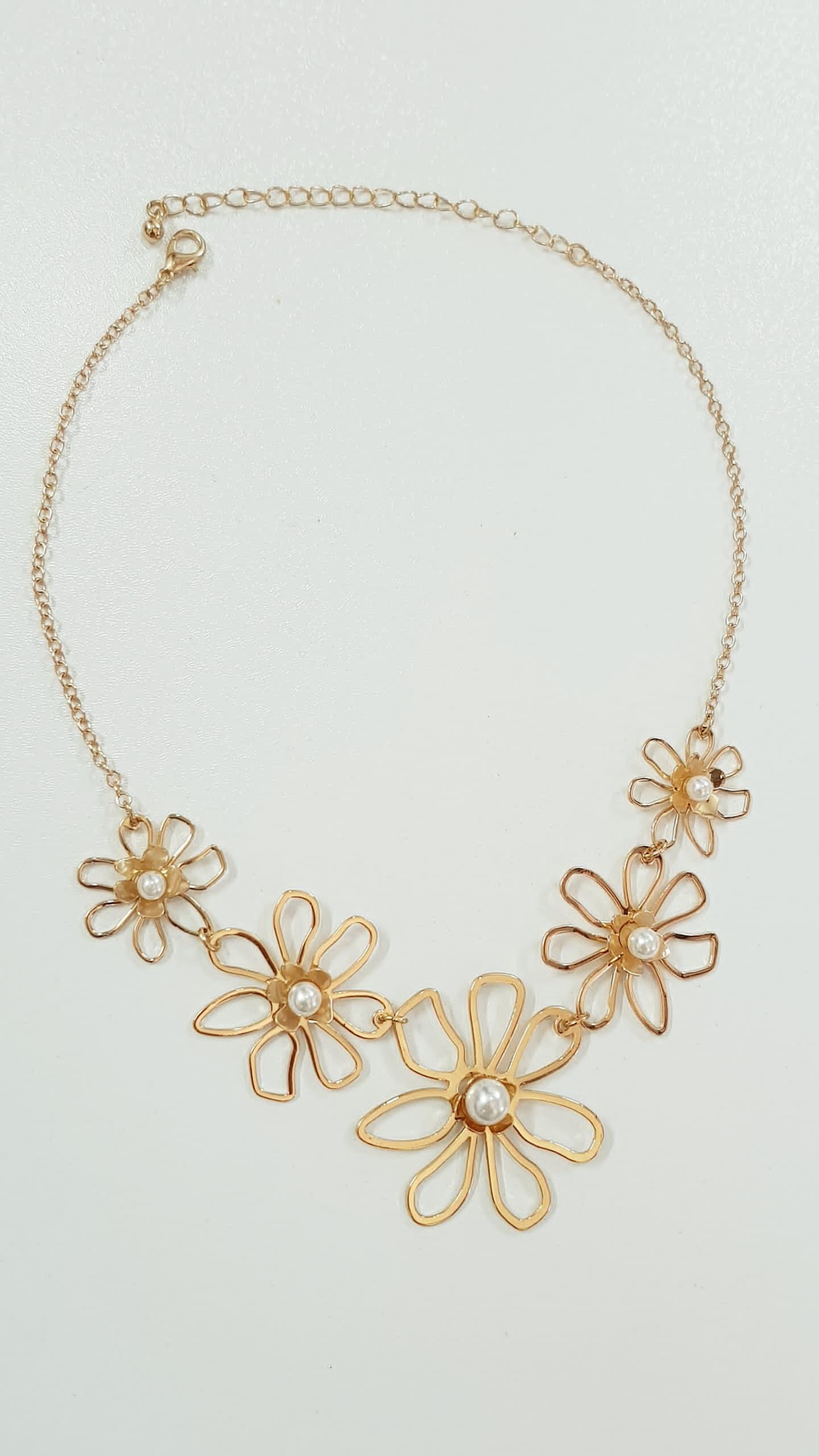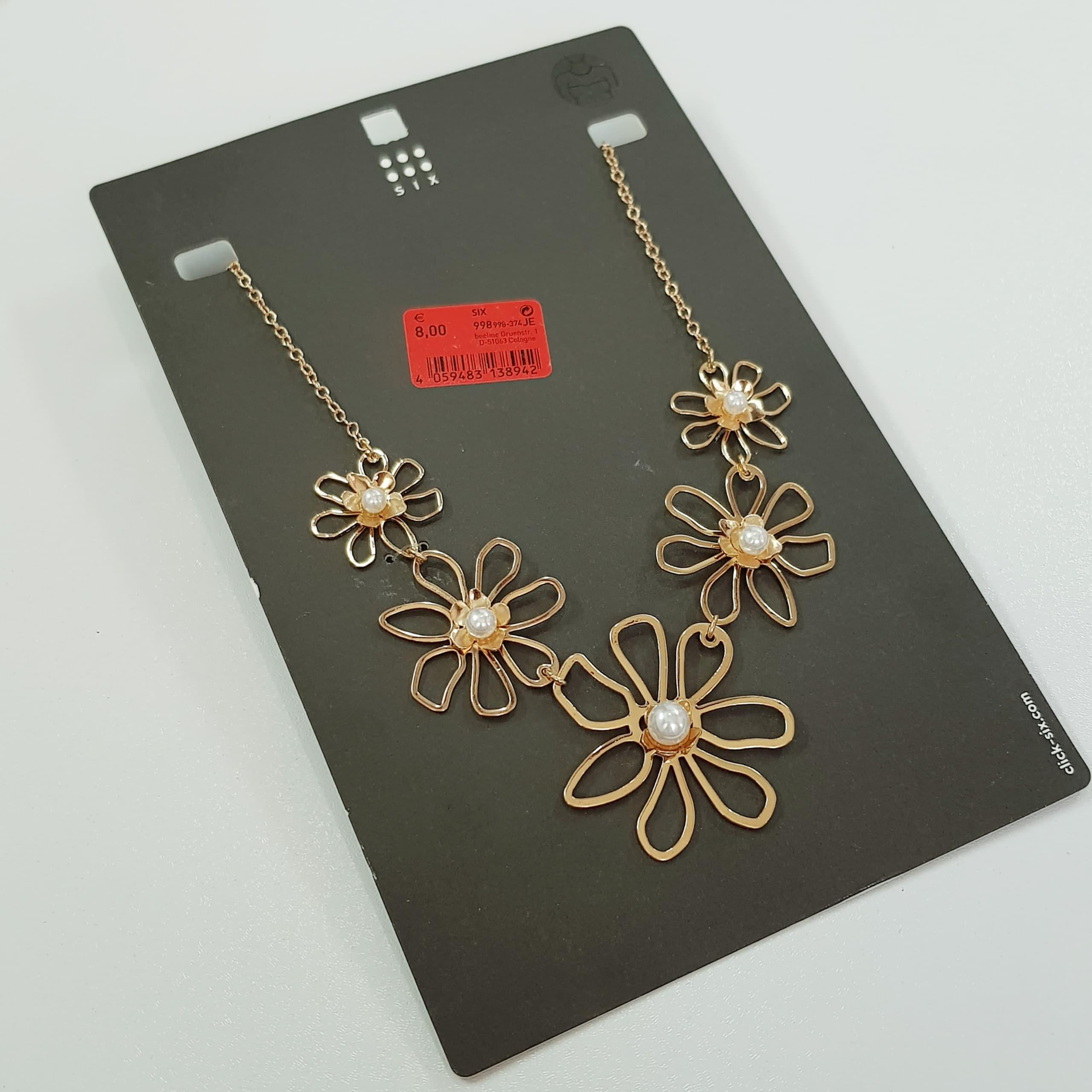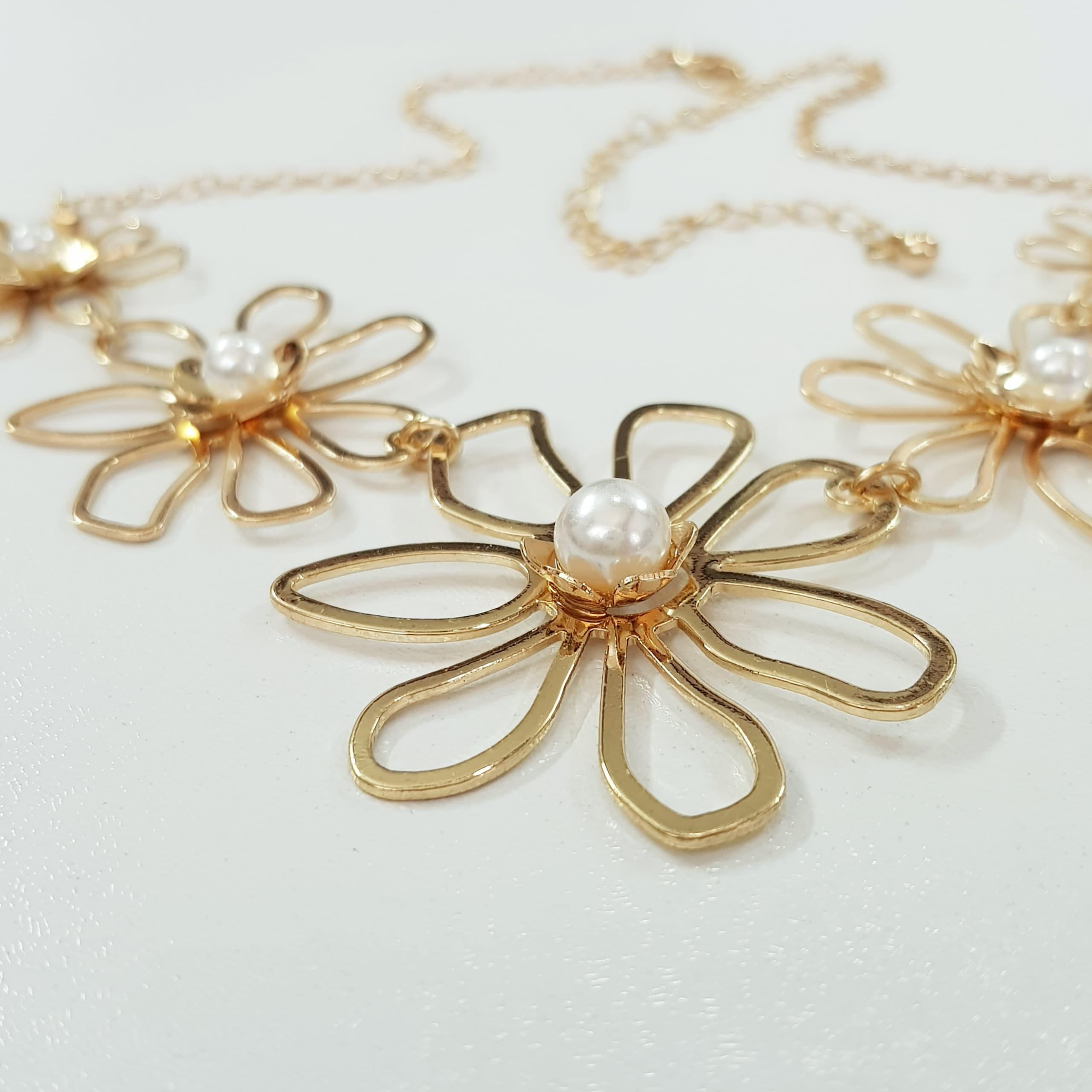گلوبند سینه ریز مجلسی گل های طلایی کار شده با مروارید ، کار فوقالعاده زیبا و درخشان، ضد حساسیت برند Six تحت لیسانس آلمان