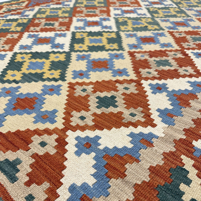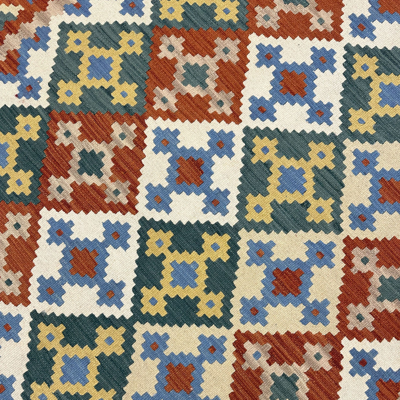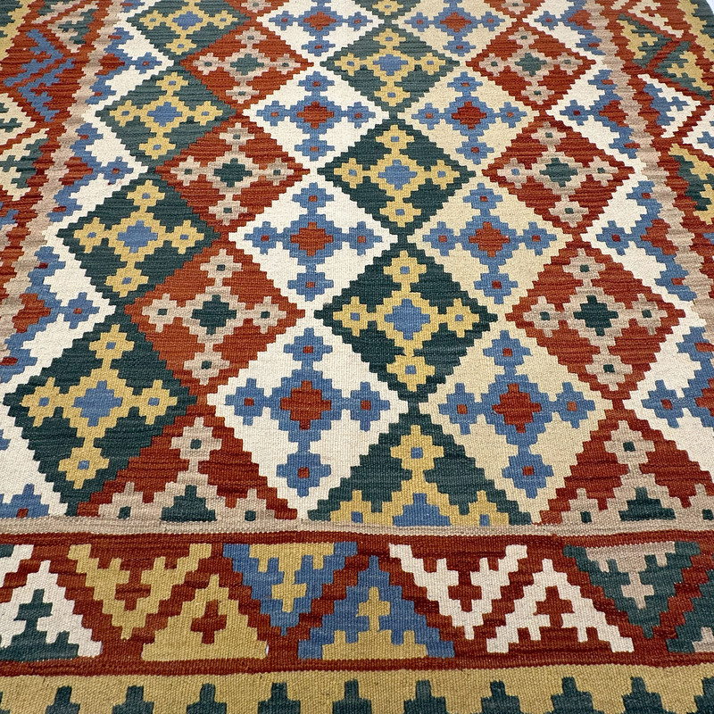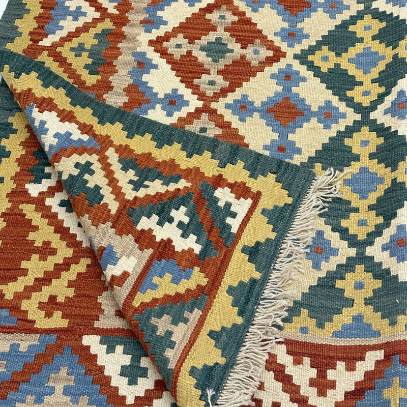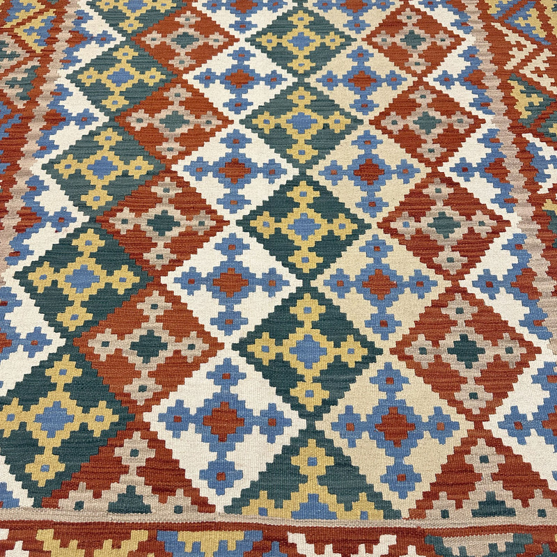 گلیم دستبافت طرح شیرازی محصول بافندگان هنرمند استان فارس میباشد. بافت این گلیم سنتی و بند و ریشه این گلیم از پشم طبیعی است و رنگ آن گیاهی میباشد و بافت آن به صورت دو رو و مشبک میباشد .این گلیم شسته شده و دو گره خورده است .سوغاتی ارزنده از استان فارس و ایران زینت بخش منزل و دکورهای شما است .