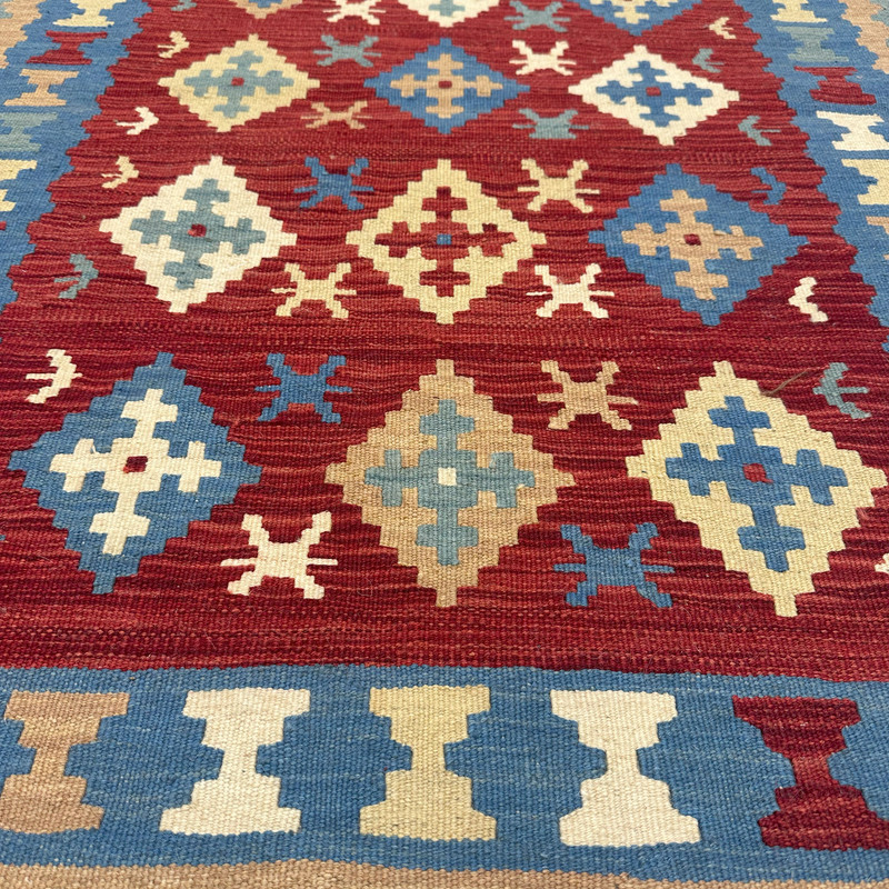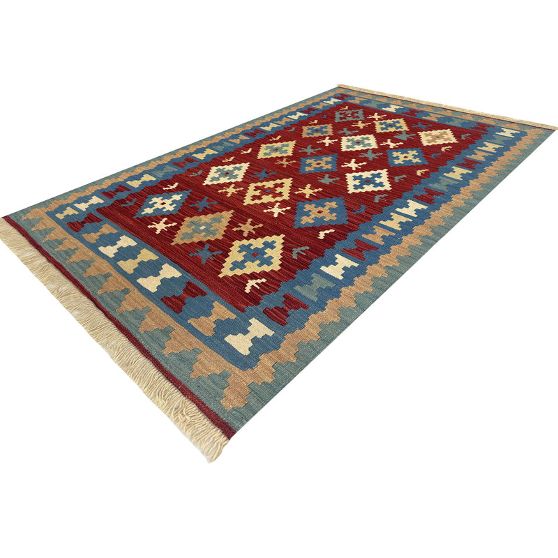 گلیم دستبافت سنتی طرح مدرن محصول بافندگان هنرمند استان فارس میباشد . بند این گلیم از پشم طبیعی است و رنگرزی پشم آن طبیعی و سنتی میباشد هارمونی رنگ آن سنتی ابرش دار و بافت آن به صورت دو رو میباشد .این گلیم شسته شده و دو گره خورده است .سوغاتی ارزنده از استان فارس و ایران زینت بخش منزل و دکورهای سنتی شما است .