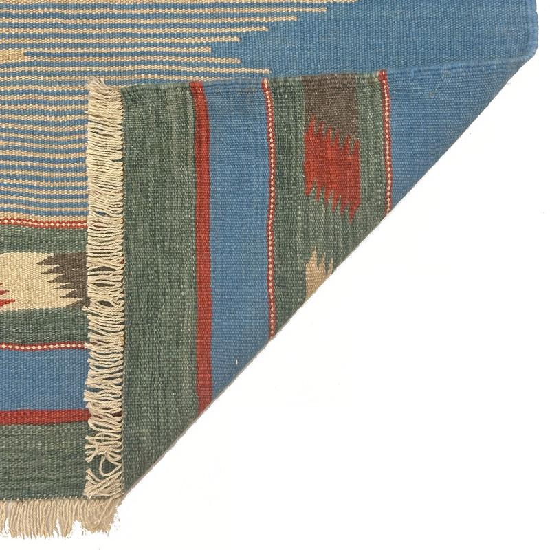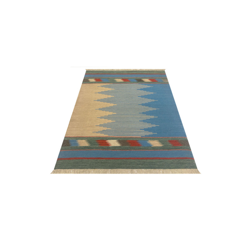 گلیم دستبافت سنتی طرح مدرن محصول بافندگان هنرمند استان فارس میباشد . بند این گلیم از پشم طبیعی است و رنگرزی پشم آن طبیعی و سنتی میباشد هارمونی رنگ آن ترکیب نخ خودرنگ و سنتی ابرش دار و بافت آن به صورت دو رو میباشد .این گلیم شسته شده و دو گره خورده است .سوغاتی ارزنده از استان فارس و ایران زینت بخش منزل و دکورهای سنتی شما است .