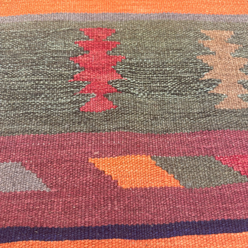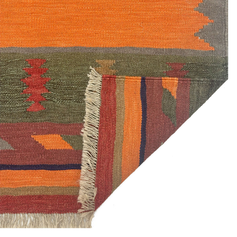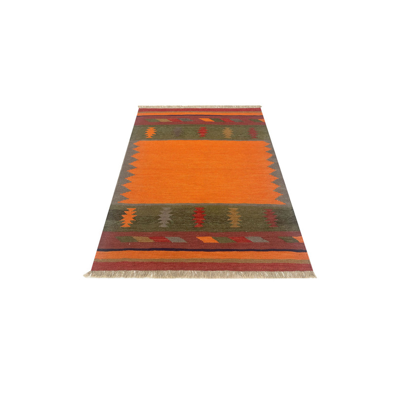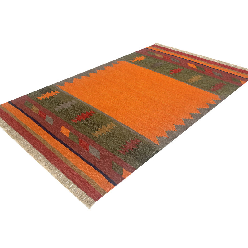 گلیم دستبافت سنتی طرح مدرن محصول بافندگان هنرمند استان فارس میباشد . بند این گلیم از پشم طبیعی است و رنگرزی پشم آن طبیعی و سنتی میباشد هارمونی رنگ آن ترکیب نخ خودرنگ و سنتی ابرش دار و بافت آن به صورت دو رو میباشد .این گلیم شسته شده و دو گره خورده است .سوغاتی ارزنده از استان فارس و ایران زینت بخش منزل و دکورهای سنتی شما است .