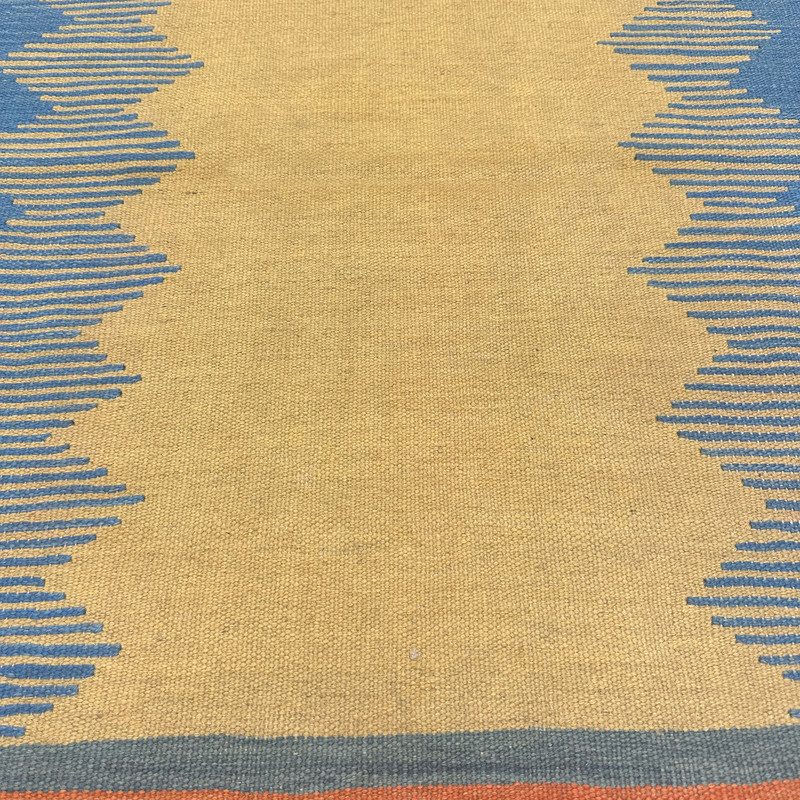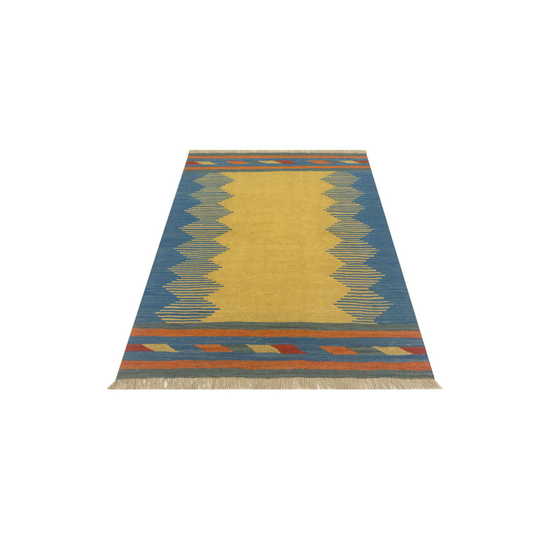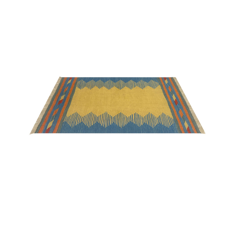 گلیم دستبافت سنتی طرح مدرن محصول بافندگان هنرمند استان فارس میباشد . بند این گلیم از پشم طبیعی است و رنگرزی پشم آن طبیعی و سنتی میباشد هارمونی رنگ آن ترکیب نخ خودرنگ و سنتی ابرش دار و بافت آن به صورت دو رو میباشد .این گلیم شسته شده و دو گره خورده است .سوغاتی ارزنده از استان فارس و ایران زینت بخش منزل و دکورهای سنتی شما است .