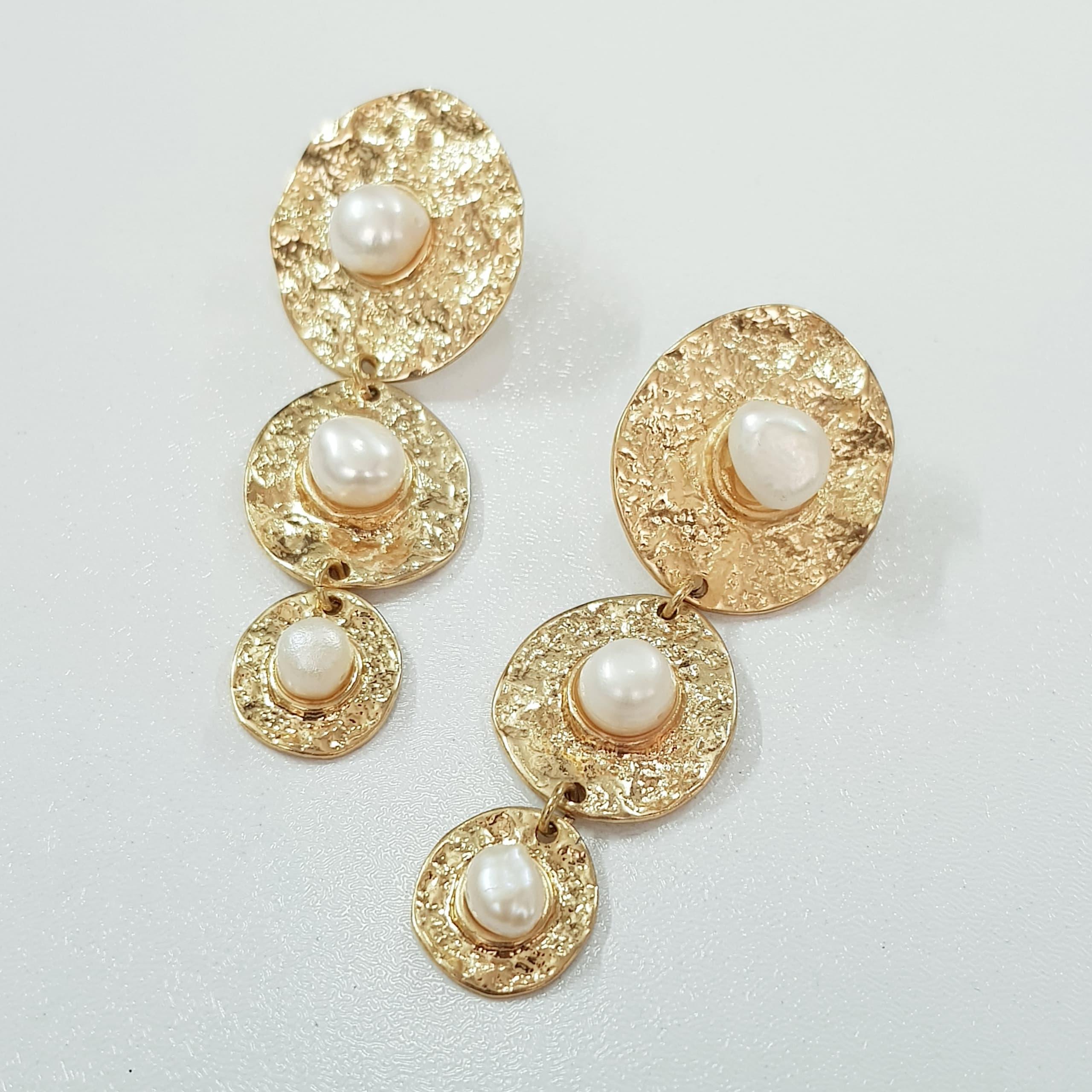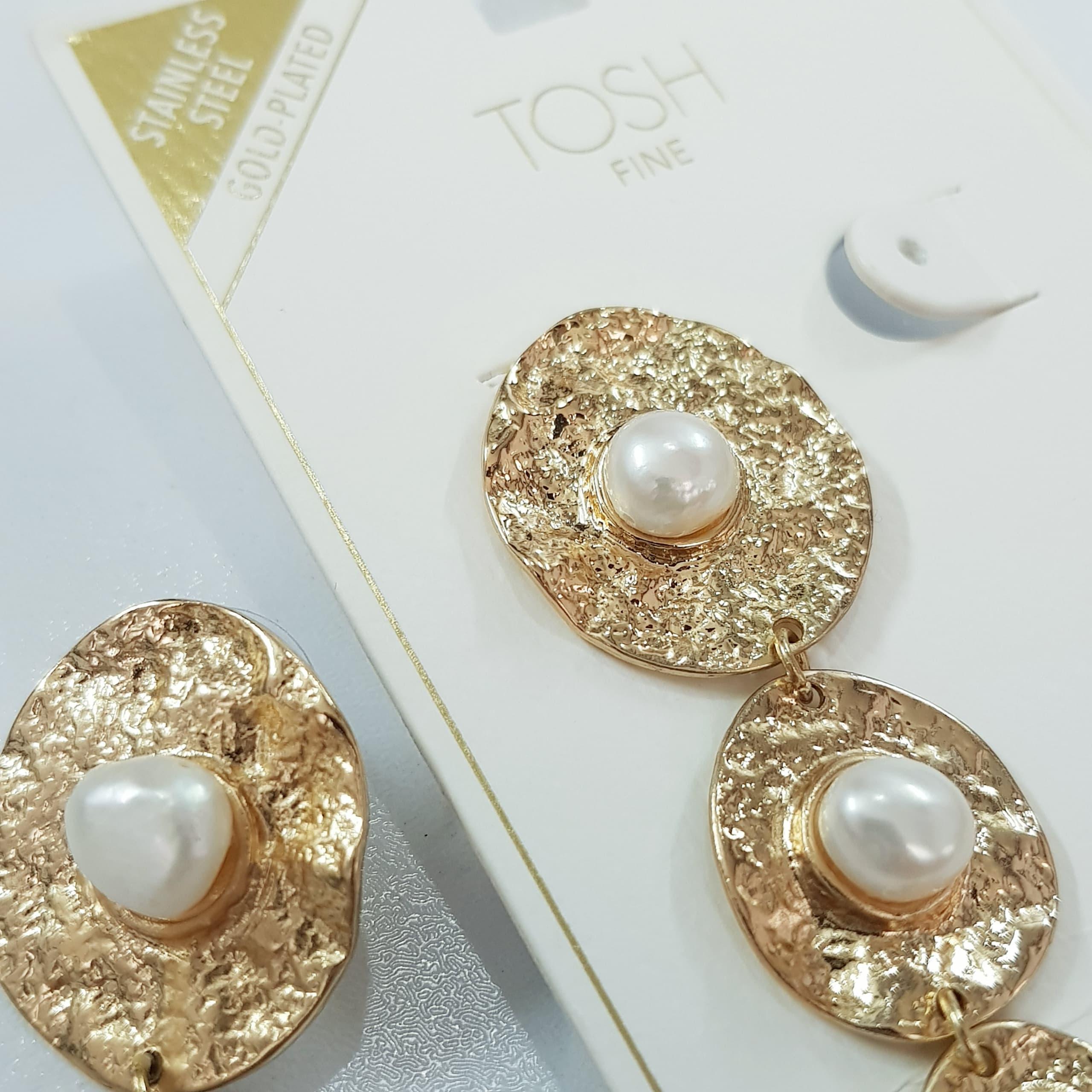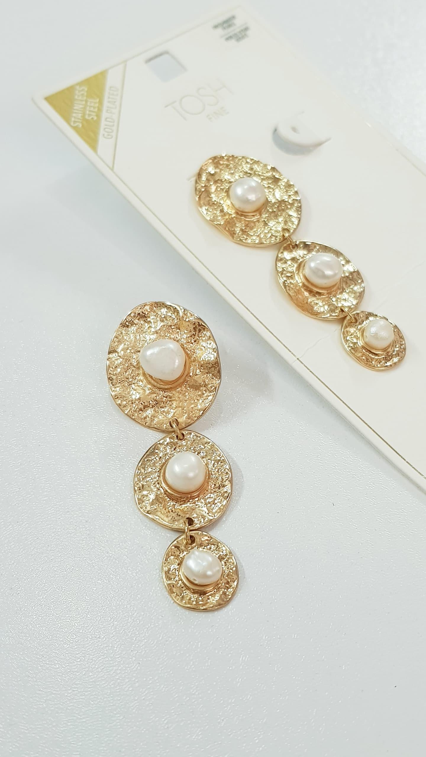 گوشواره استیل طلایی آویز مروارید آب شیرین اصل ، کار فوق العاده زیبا و ترند ، تعداد محدود رنگ ثابت ، ضد حساسیت برند TOSH آلمان