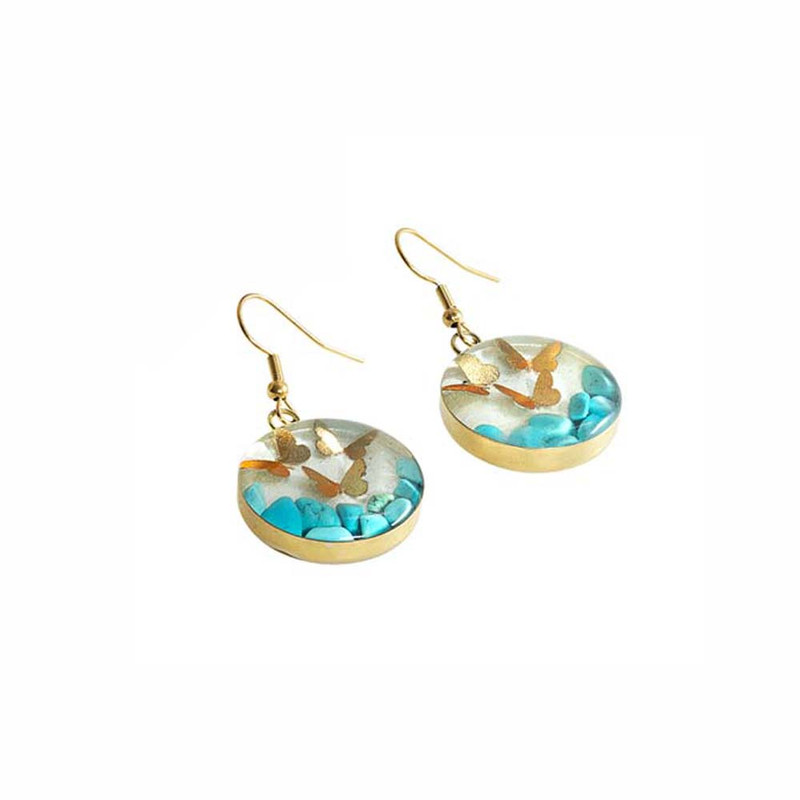 محصولات دستساز آلتین هنر، حس و انرژی بی نظیر هنر ایرانی را در گوشواره سه پروانه خلاصه کرده است. درخشش ورق طلای طرح پروانه ها در وسط گوشواره، می تواند هر چشمی را خیره کند. این گوشواره به خاطر ترکیب رنگی زیبایش، با هر نوع لباس و رنگ و پارچه ای بر تن شما مینشیند. کیفیت مناسب و جزئیات محسور کننده این محصول می تواند شما را منحصر به فرد به نمایش بگذارد. ما برای زیبایی شما ارزش قائلیم و اعتقاد داریم که زیبایی حق شماست. تنها طلای استفاده شده در این محصول ، پروانه ها می باشد که از جنس ورق نازک طلای 24 عیار به ضخامت 5 میکرون بر روی لایه ای پلیمری قرار گرفته شده و رویه آن را پوشش رزینی پوشانده است.