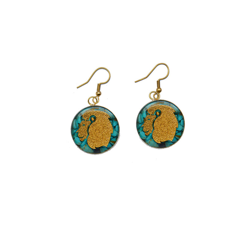 این گوشواره فاخر و زیبا با طراحی نماد ماه تولد مرداد (برج اسد یا شیر)، تلفیقی از هنر و کیفیت را به نمایش گذاشته است. زمینه این گوشواره از سنگ طبیعی فیروزه ساخته شده که با رنگ آبی خیرهکننده و دلنشین خود، جلوهای از طبیعت را به زیورآلات شما میافزاید. نماد شیر که با روکش طلای ضخیم 5 میکرون با دقت بالا طراحی شده، نشاندهنده قدرت، اشتیاق و درخشندگی ویژه این برج است.