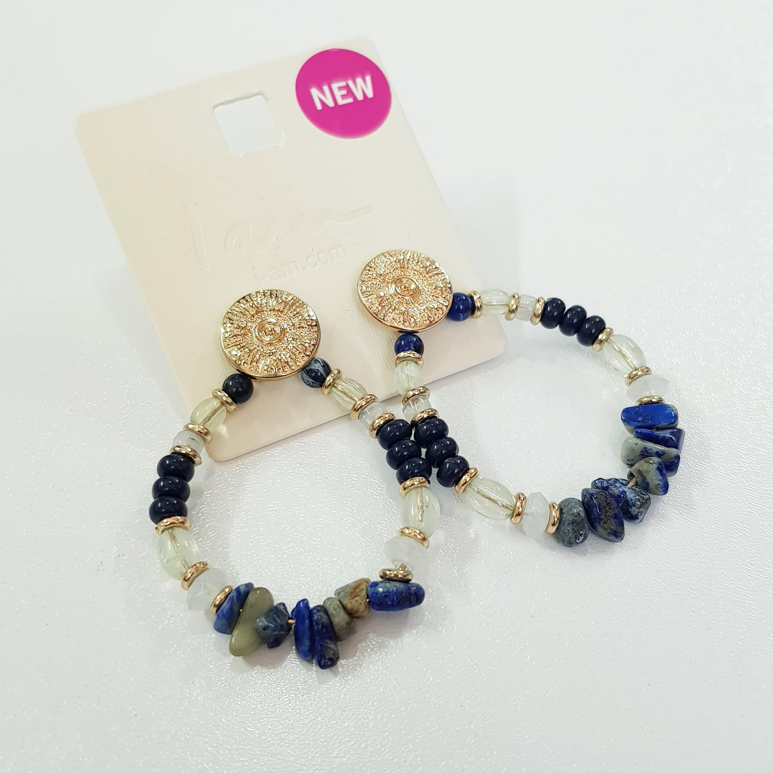 گوشواره طلایی آویزدار کار شده با سنگ های لاجورد آبی اصل، کیفیت فوق العاده عالی و بسیار زیبا از سری لیمیتد ادیشن ضد حساسیت برند iam تحت لیسانس آمریکا