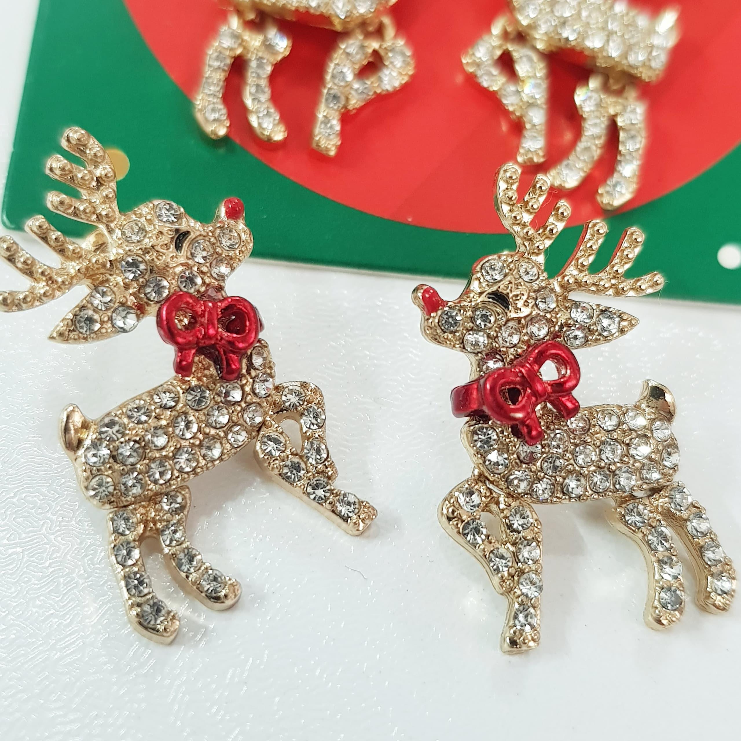 گوشواره طلایی گوزن نگین دار ، دست و پای گوزن متحرک ، کار فوق العاده زیبا و درخشان و پر از جزییات  ضد حساسیت  برند iam تحت لیسانس آمریکا