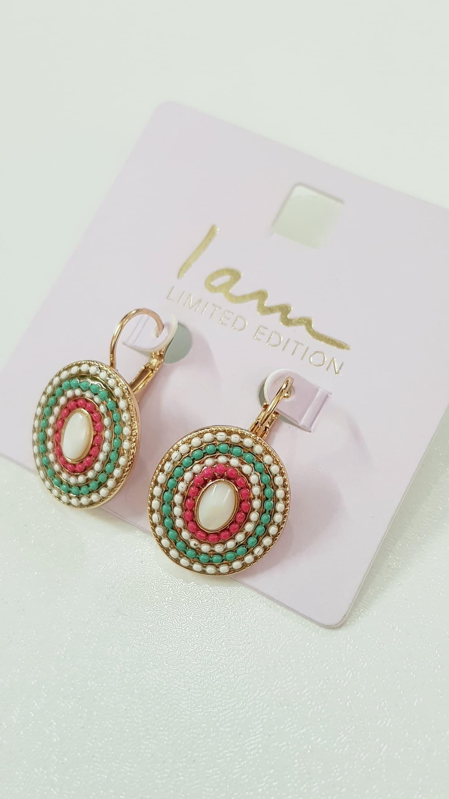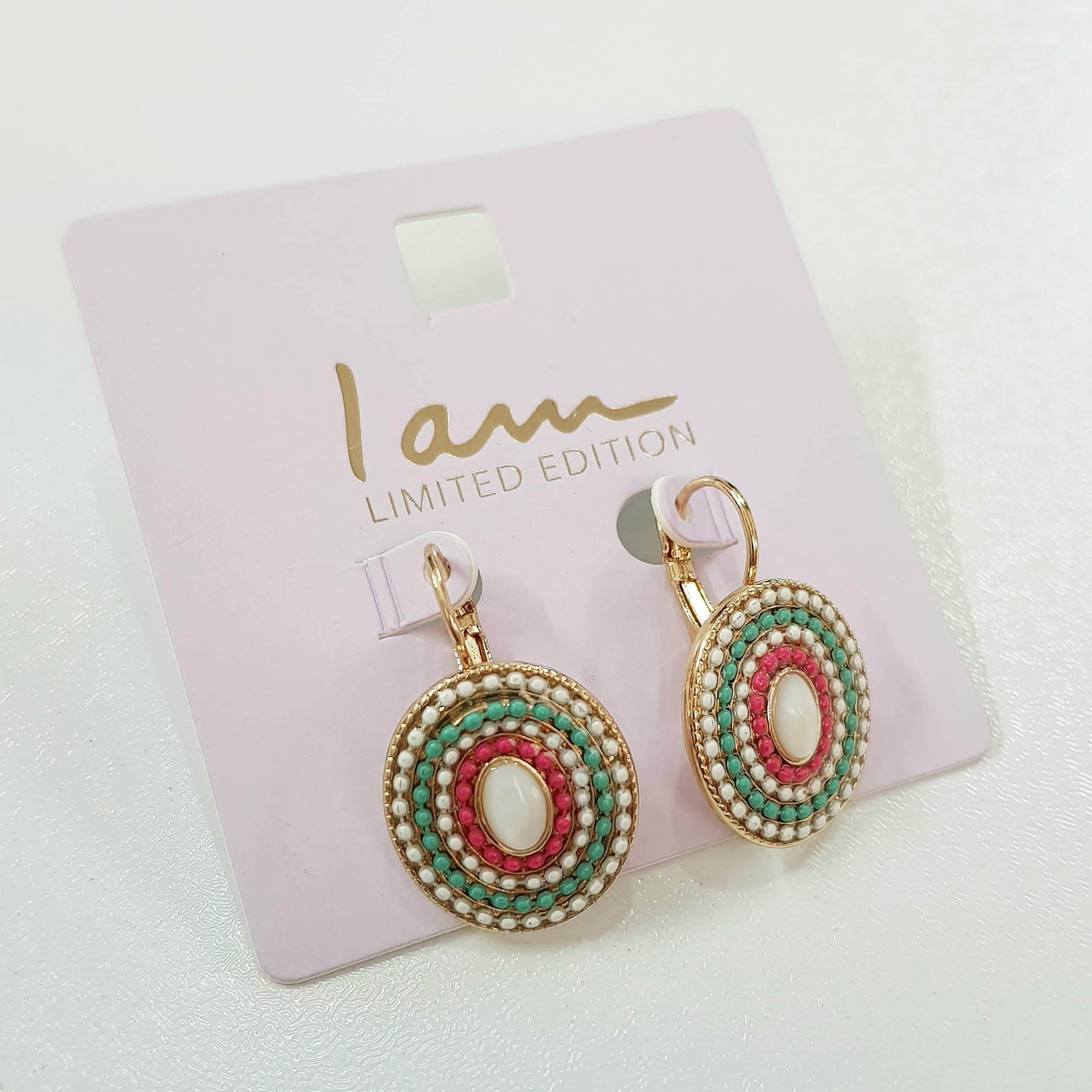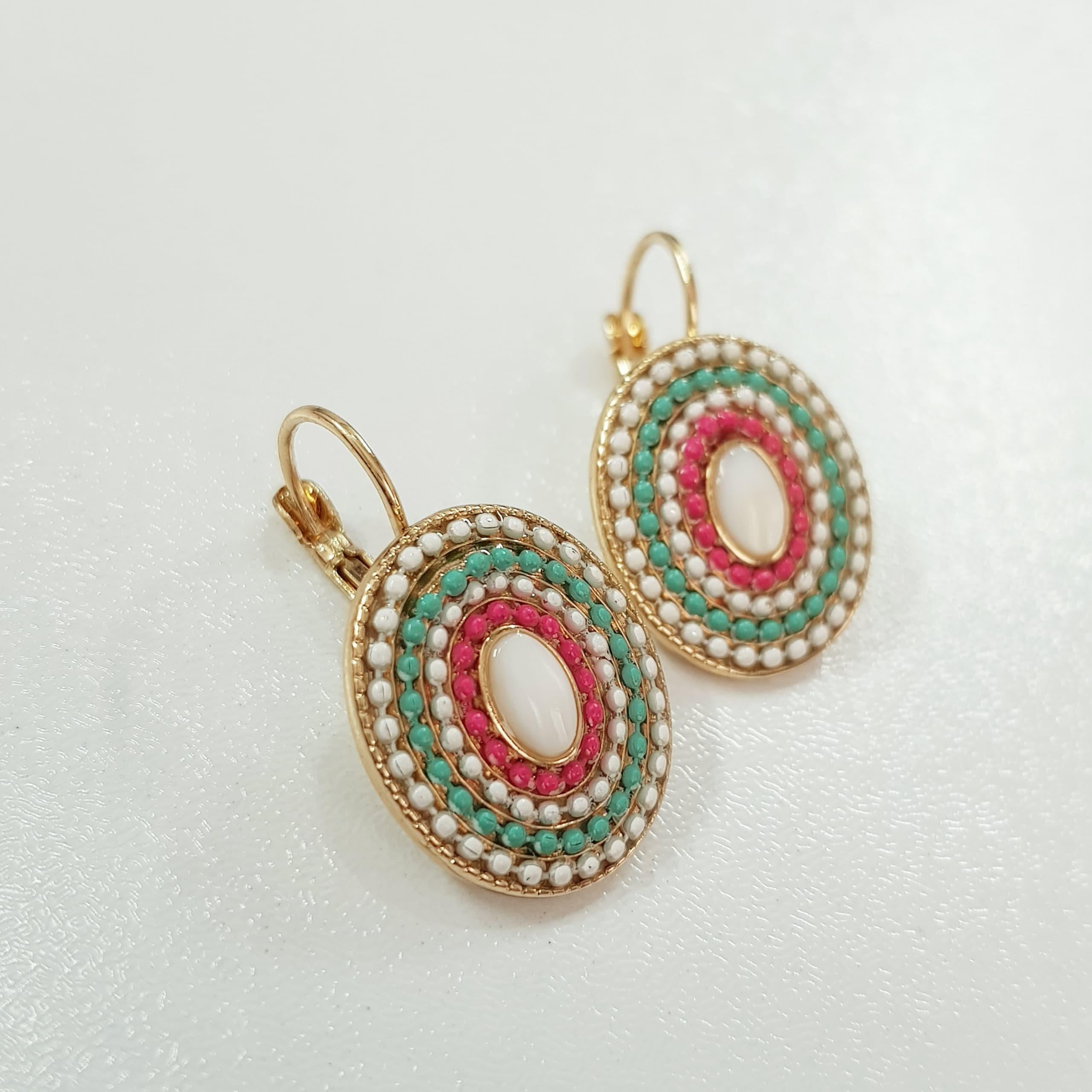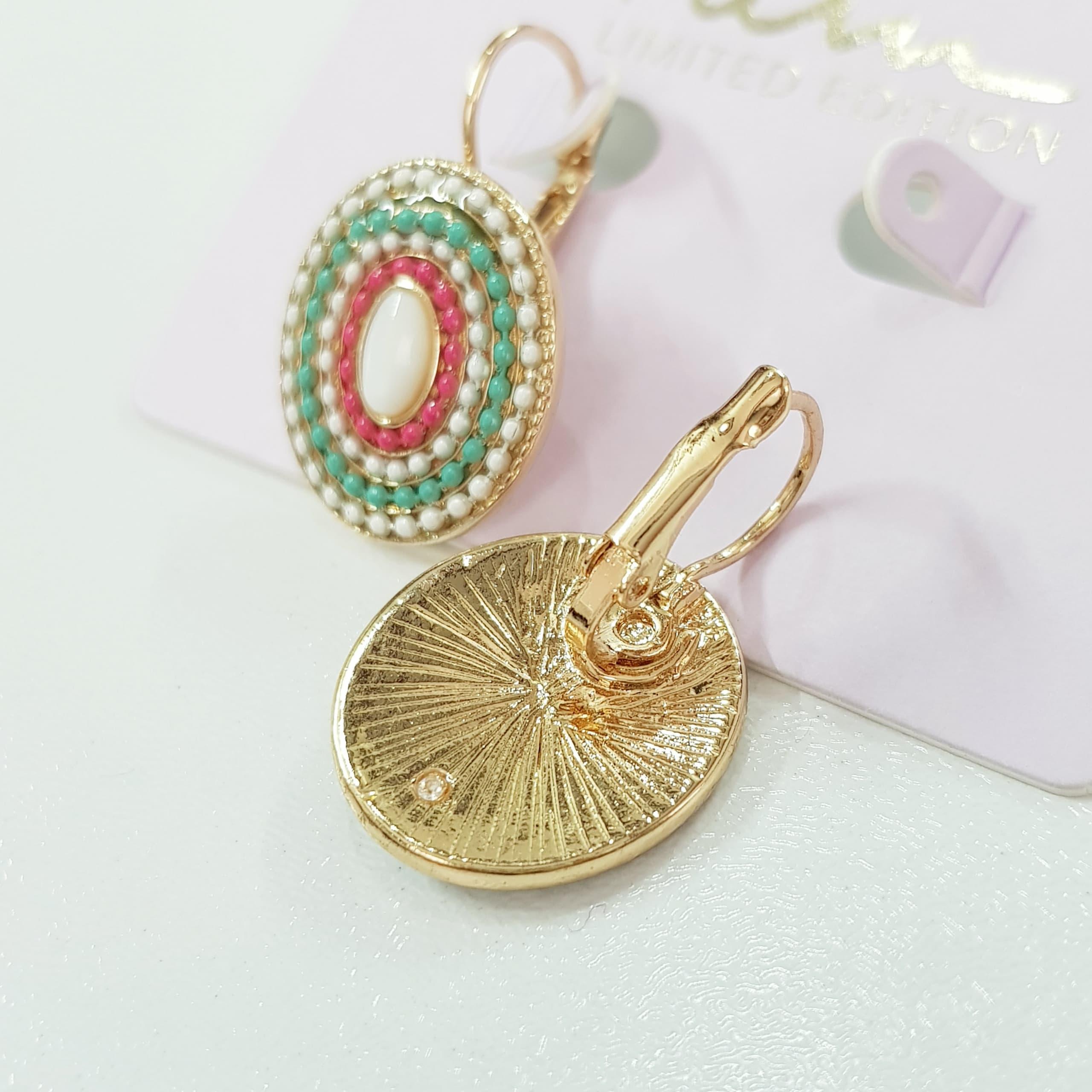 گوشواره قفلی طلایی مدل سنتی ، کار شده با سنگ صدف اصل ، کیفیت عالی ، بسیار زیبا ضد حساسیت برند iam تحت لیسانس آمریکا