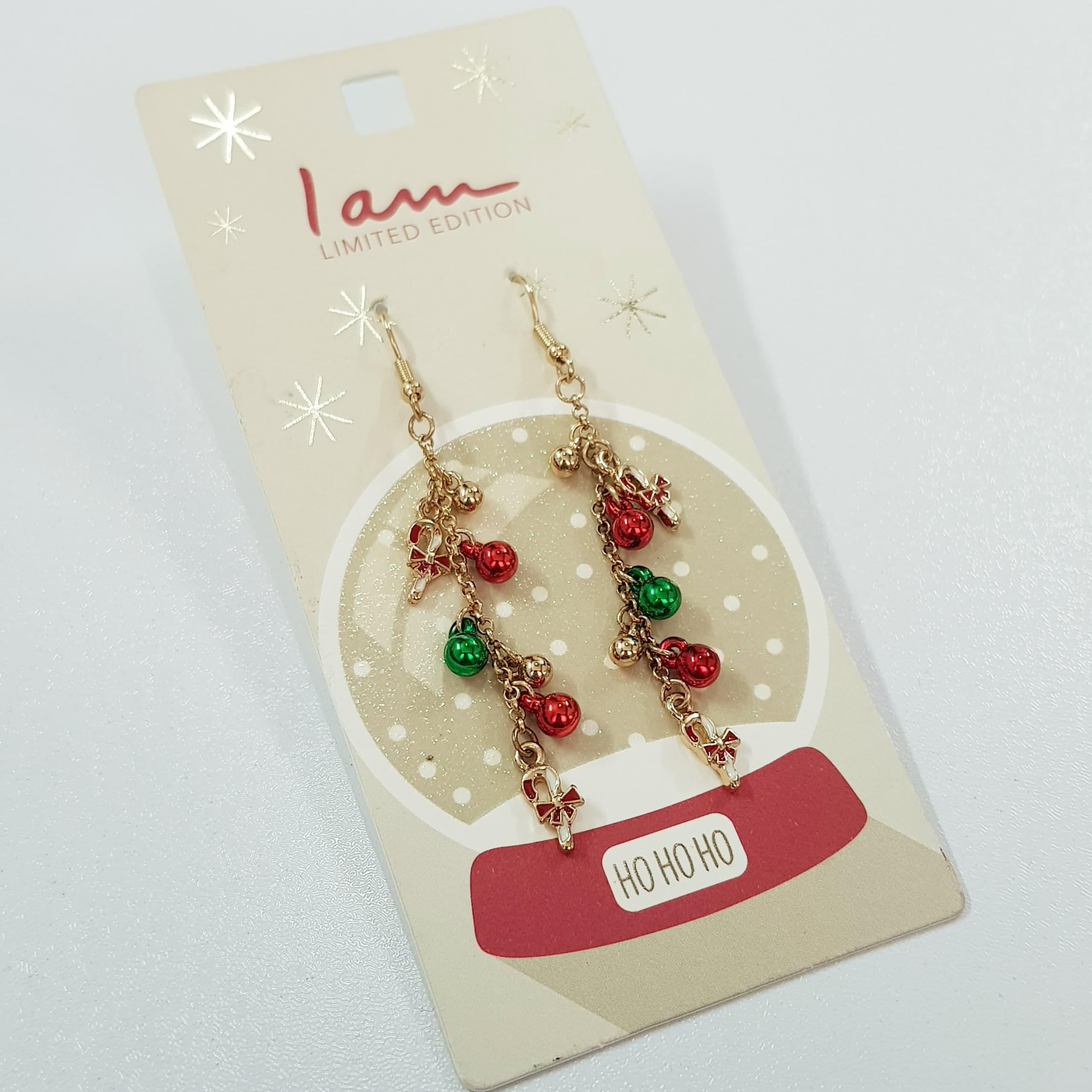 گوشواره کریسمسی طلایی آویزدار ، کار فوق العاده زیبا و درخشان ضد حساسیت برند iam تحت لیسانس آمریکا