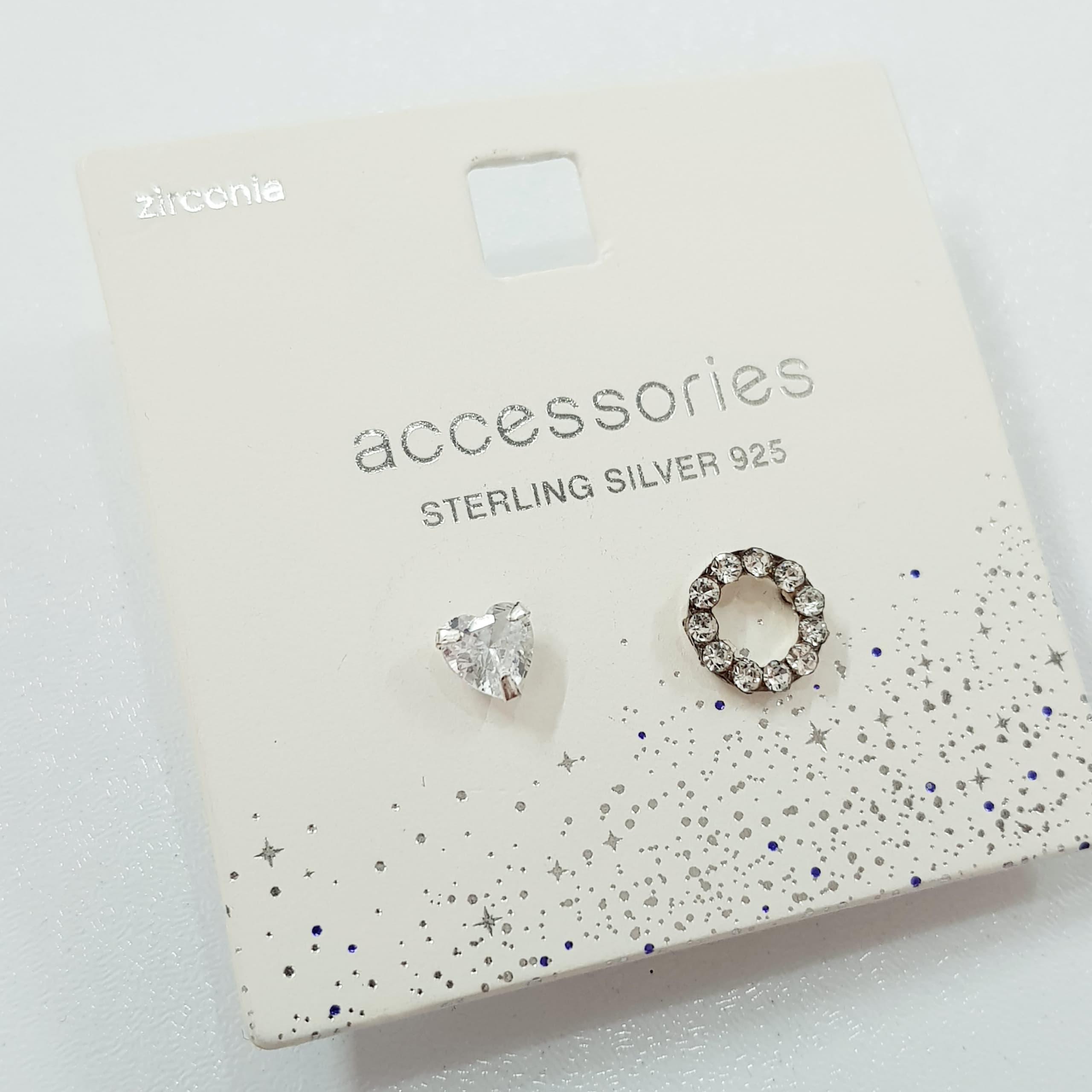گوشواره گلگوش نگین دار مدل نامتقارن جنس نقره عیار ۹۲۵ برند Accessories کد ۲۱۰۹۳