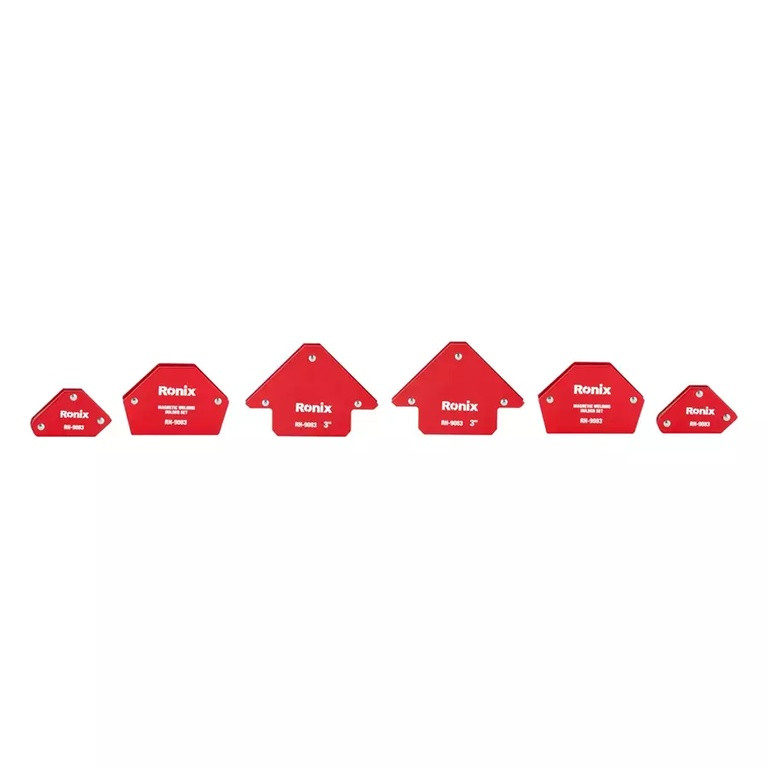ست گونیا مگنت جوشکاری برند رونیکس برای پروژه‌های حرفه‌ای طراحی شده و با دقت بالا و تنوع زاویه، از جابجایی قطعات کار جلوگیری می‌کند. این مجموعه شامل دو گونیای مثلثی سه اینچ، دو گونیای مینی و دو گونیای شش‌ضلعی است. گونیاهای مثلثی امکان نگهداری قطعات در زاویه‌های ۴۵، ۹۰، ۱۳۵ و ۱۸۰ درجه را فراهم می‌کنند، در حالی که گونیاهای مینی زاویه‌های ۴۵، ۹۰ و ۱۸۰ درجه و گونیاهای شش‌ضلعی زاویه‌های ۳۰، ۴۵، ۶۰، ۷۵، ۹۰ و ۱۸۰ درجه را پوشش می‌دهند. تمامی قطعات از فولاد آلیاژی A3 مقاوم با روکش ضدزنگ ساخته شده و مجهز به آهن‌ربای سرامیکی هستند. قدرت جذب گونیای مثلثی ۱۲ کیلوگرم، گونیای شش‌ضلعی ۸ کیلوگرم و گونیای مینی ۴ کیلوگرم است. این مجموعه مقاومت بالایی در برابر گرما و خوردگی دارد و برای استفاده طولانی‌مدت مناسب می‌باشد.